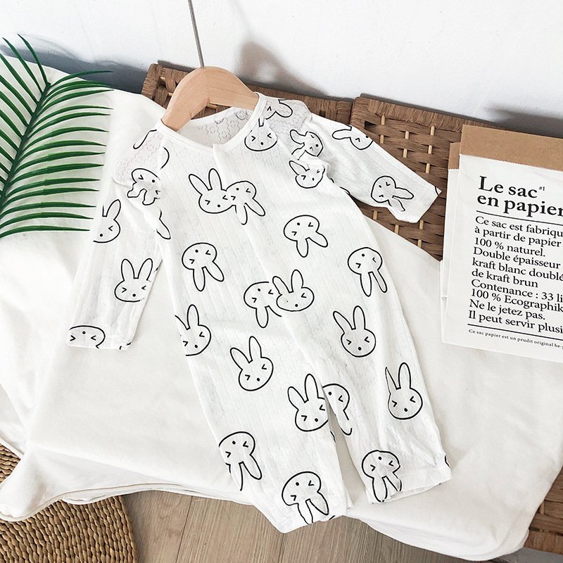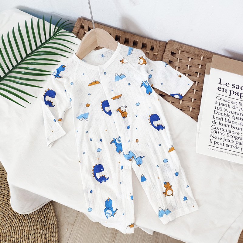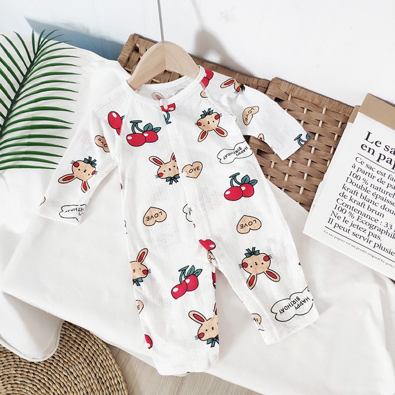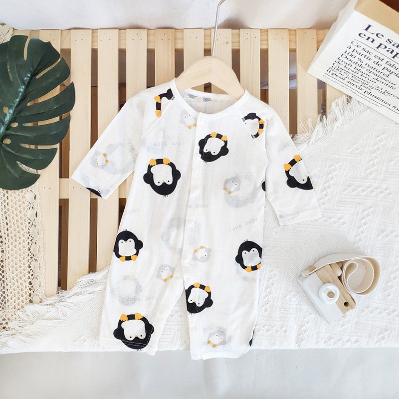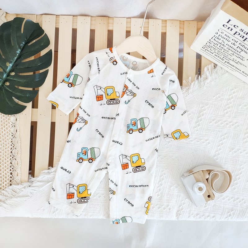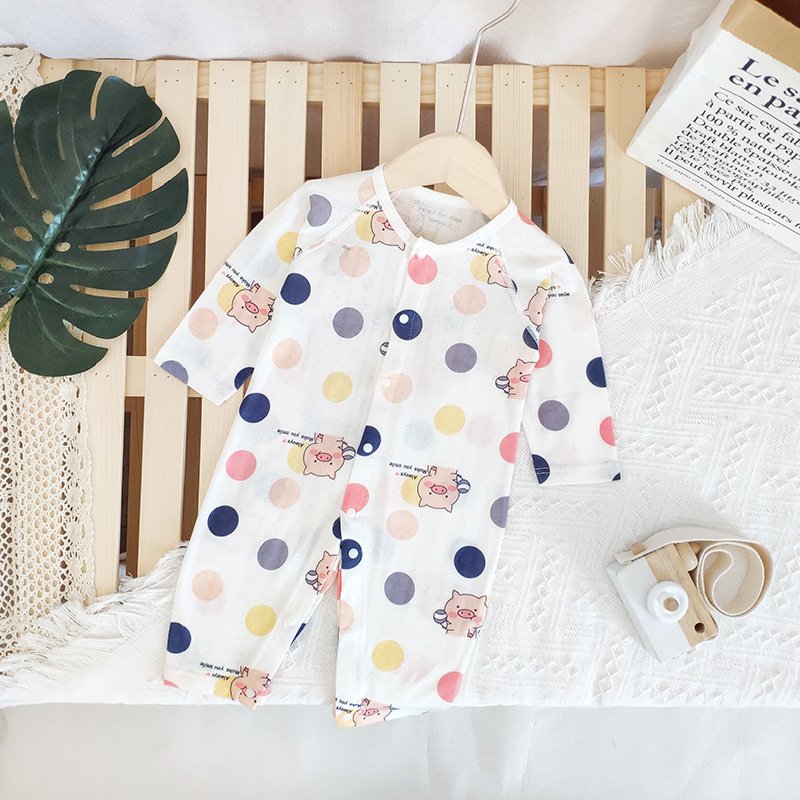 Baby Mailing Thin Long-Sleeved Bamboo Fiber Bear Print Soft Romper