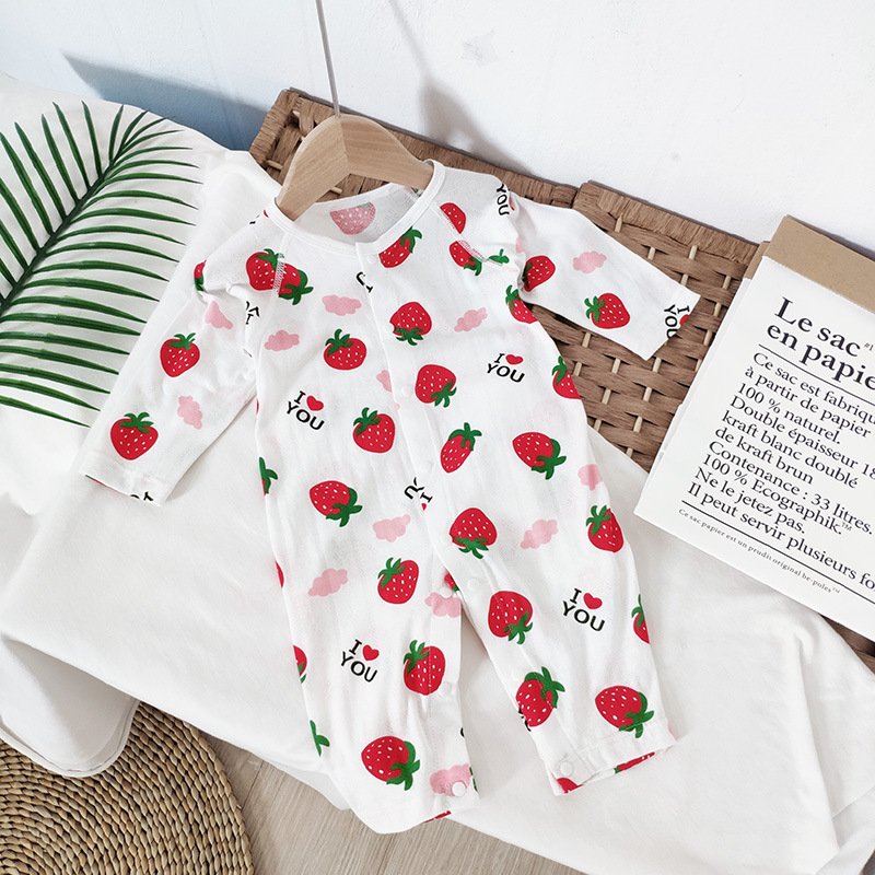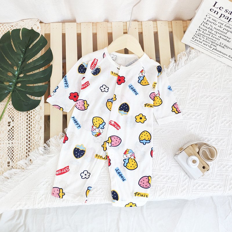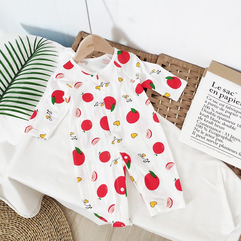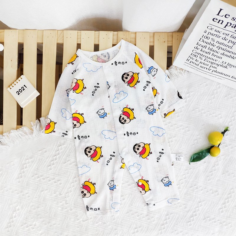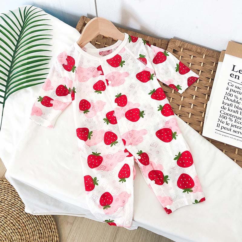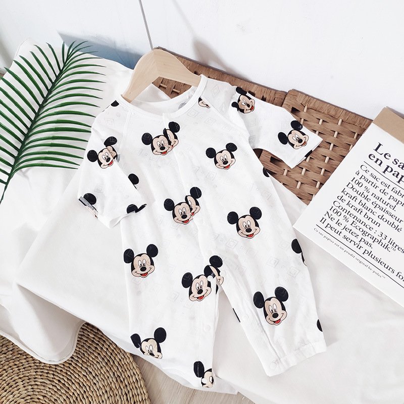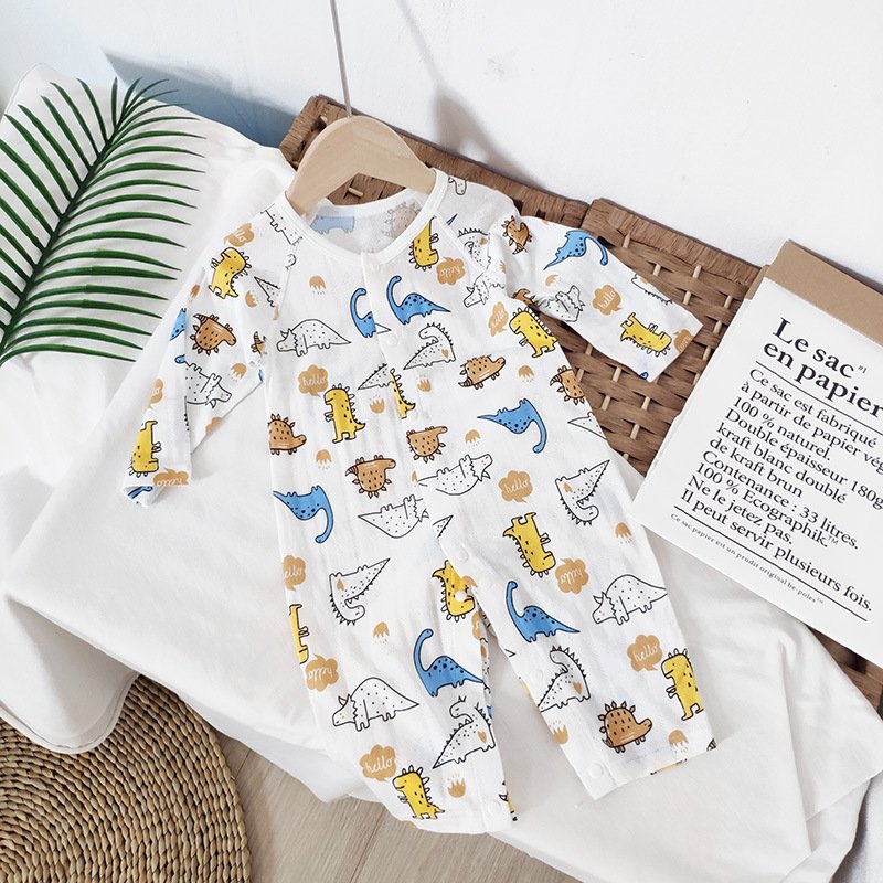 Baby Mailing Thin Long-Sleeved Bamboo Fiber Bear Print Soft Romper