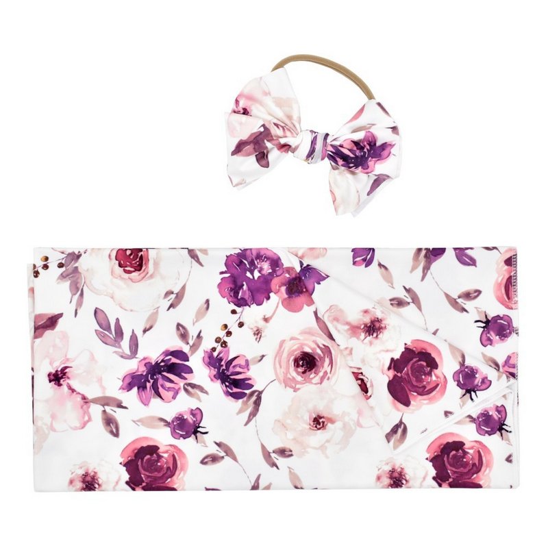 Baby Newborn Floral Swaddle Blanket And Bow Headband