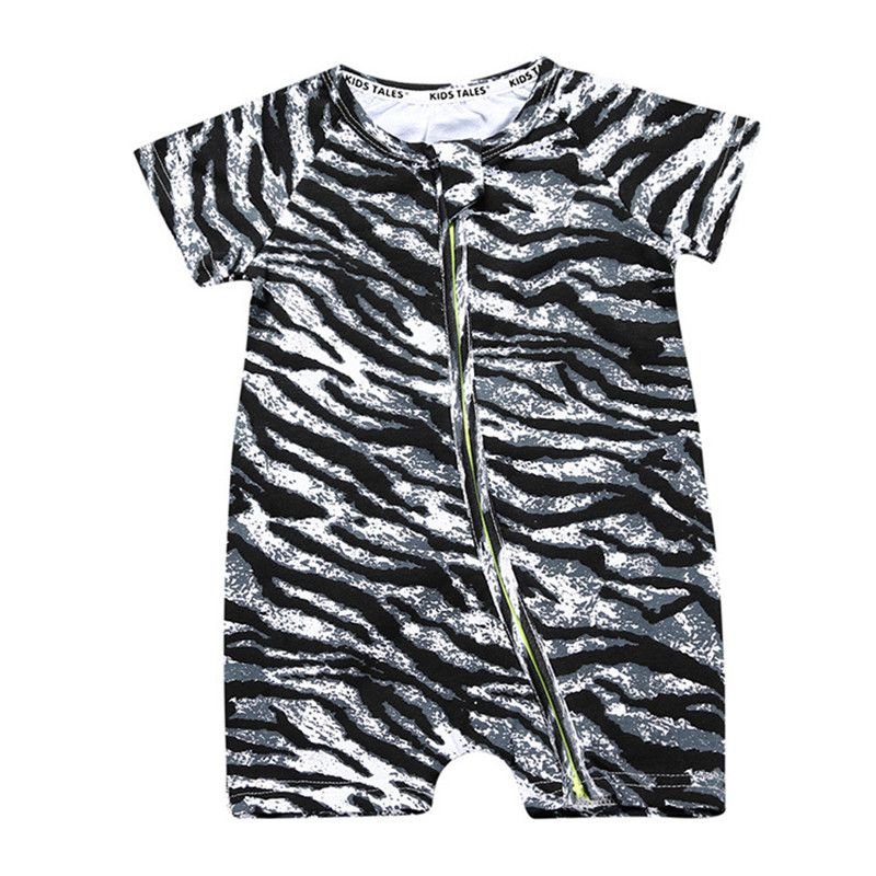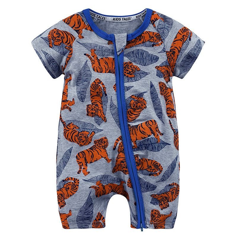 Baby Short Sleeves Cartoon Print Romper