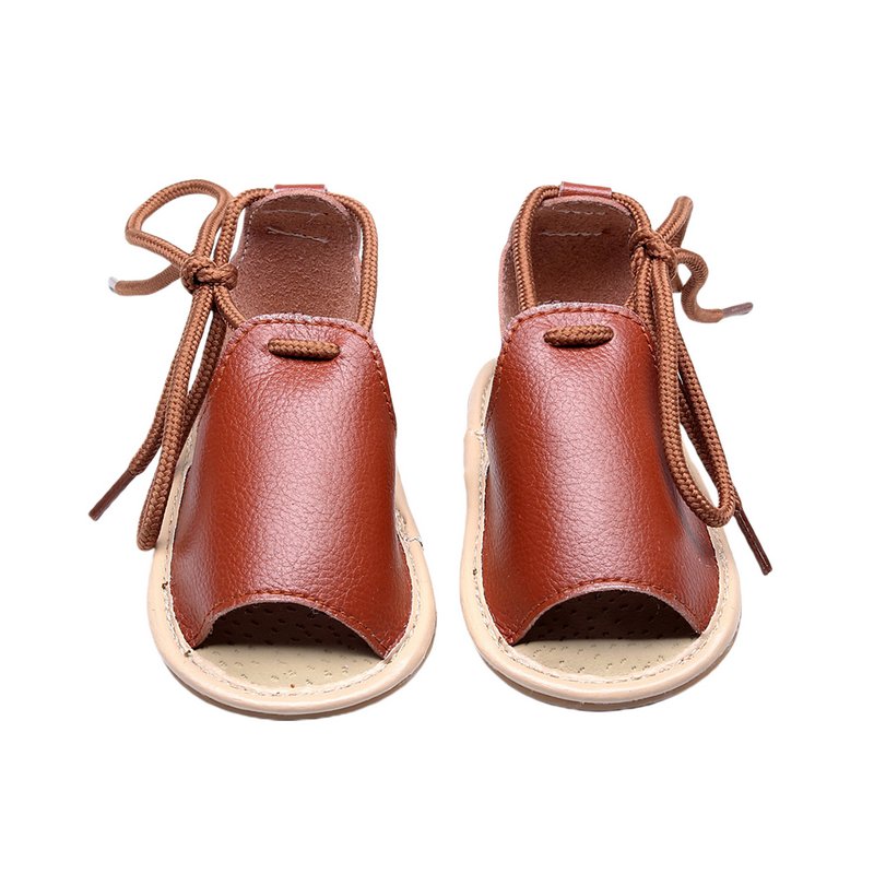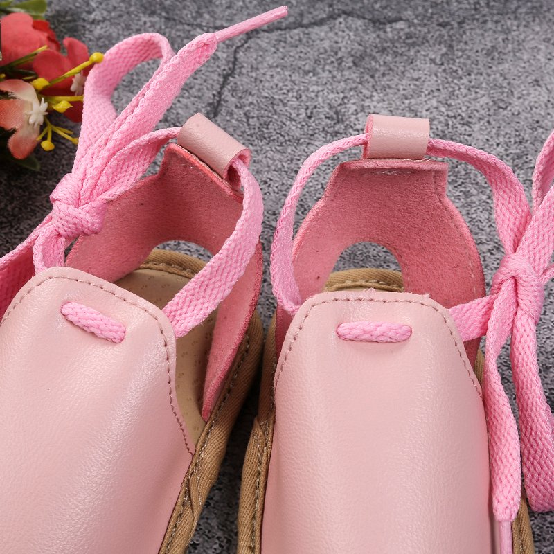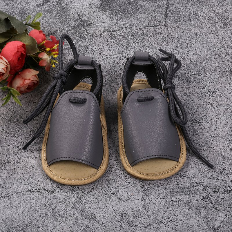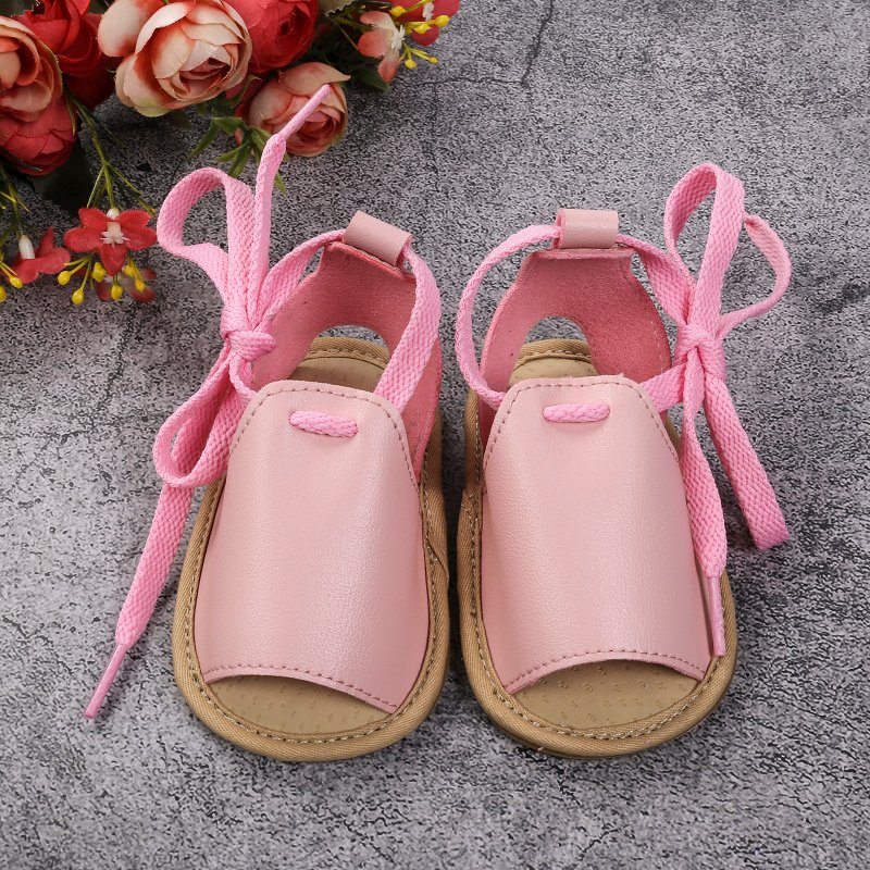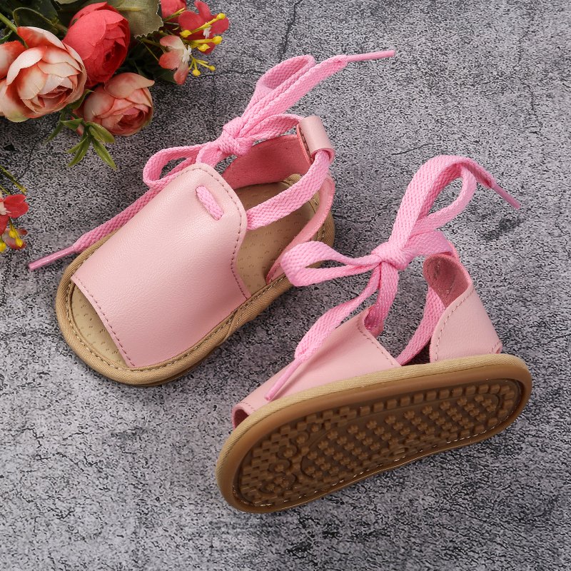 Baby Simple Solid Color Lace Up Soft Bottom Non-slip Flat Sandals First Walkers