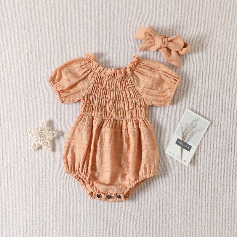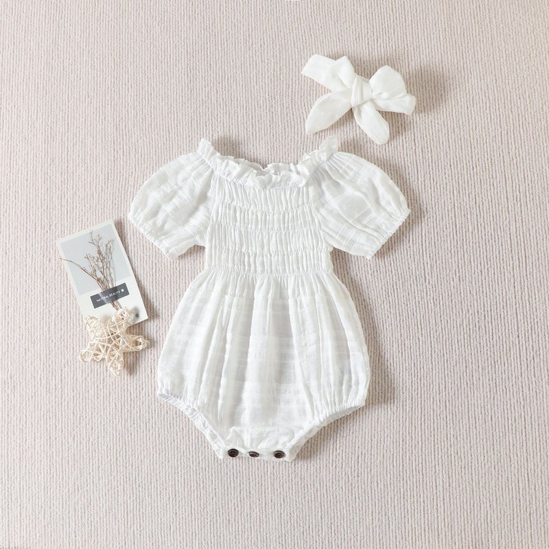 Baby Summer Simple Solid Color Short Sleeve Rompers