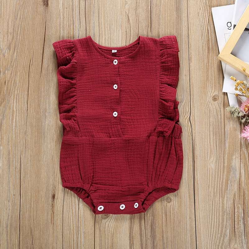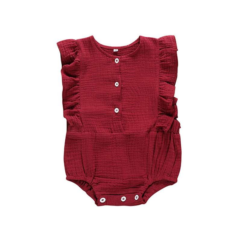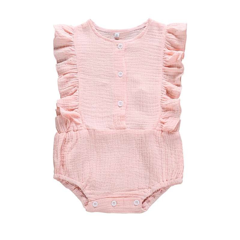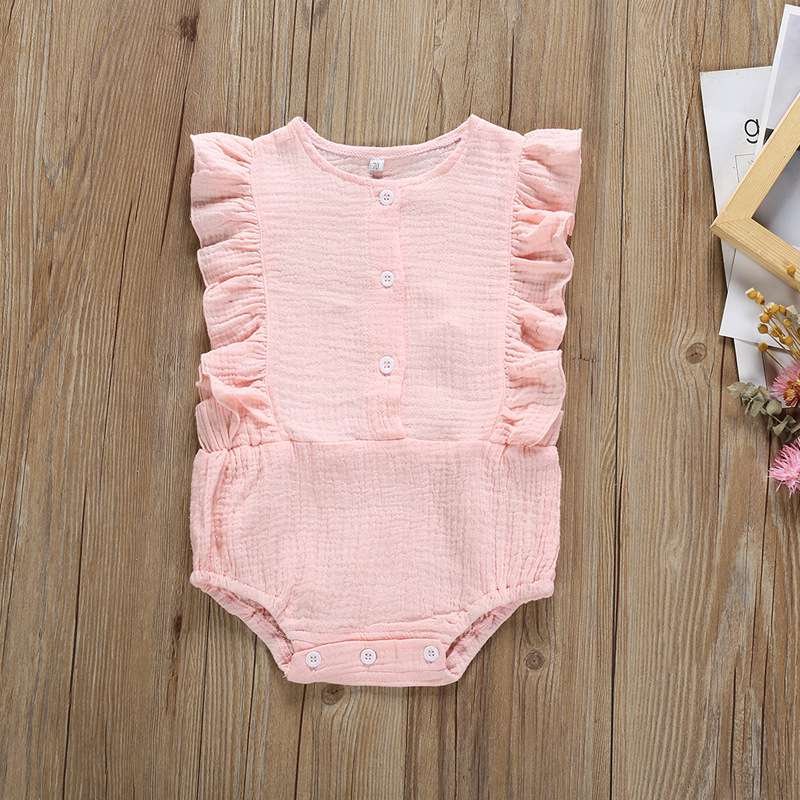 Baby Summer Solid Color Cotton Ruffled Bodysuit