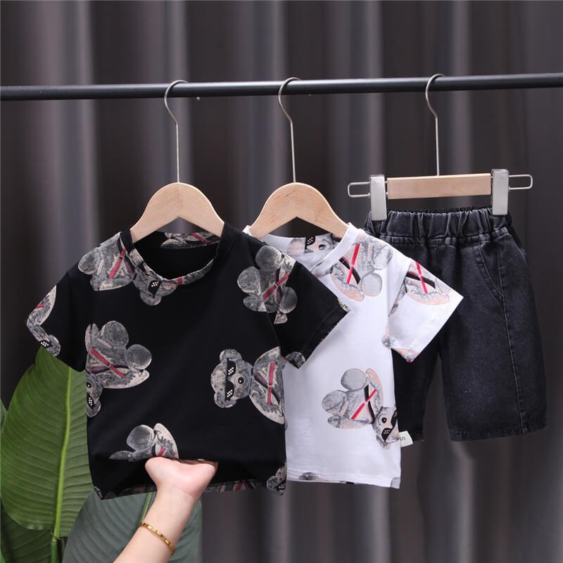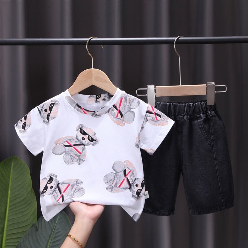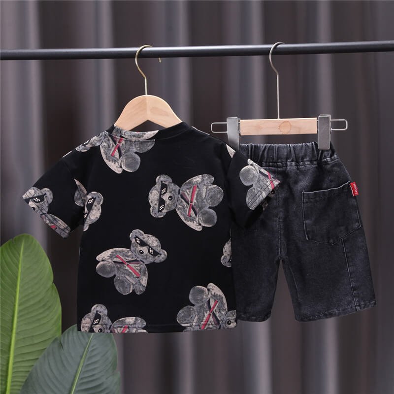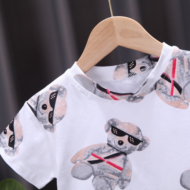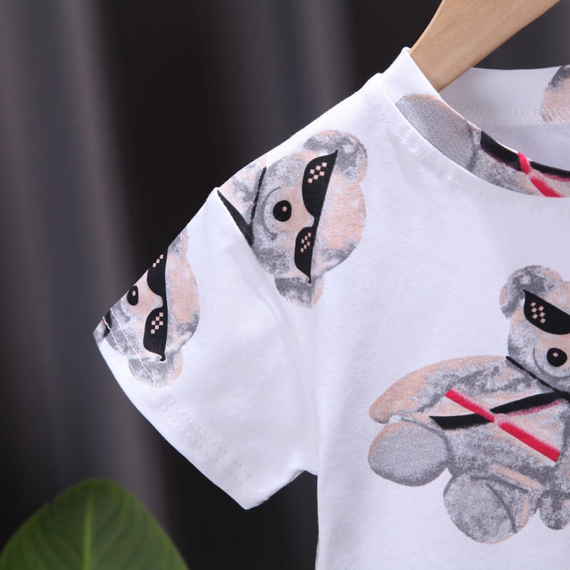 Boy Fashion Bear Print T-Shirt And Shorts Set