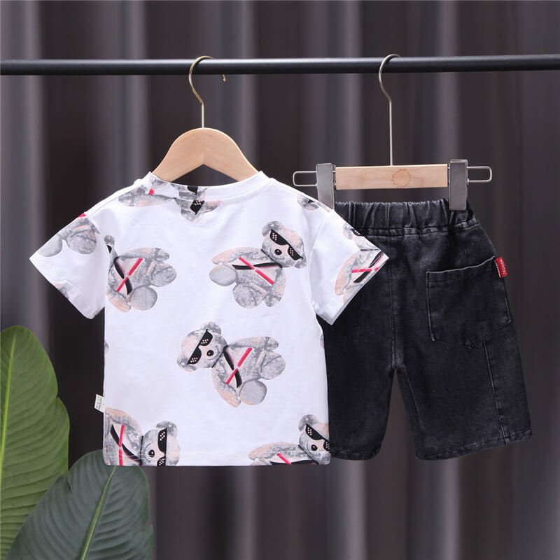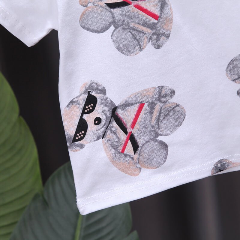 Boy Fashion Bear Print T-Shirt And Shorts Set