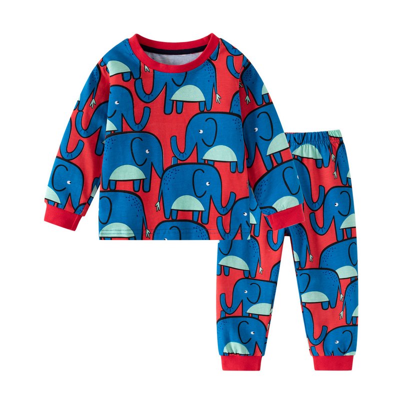 Boy Fashion Casual Cotton Animals Printed Long Sleeve Sweatshirt Slim Fit Pants Two-Piece Set
