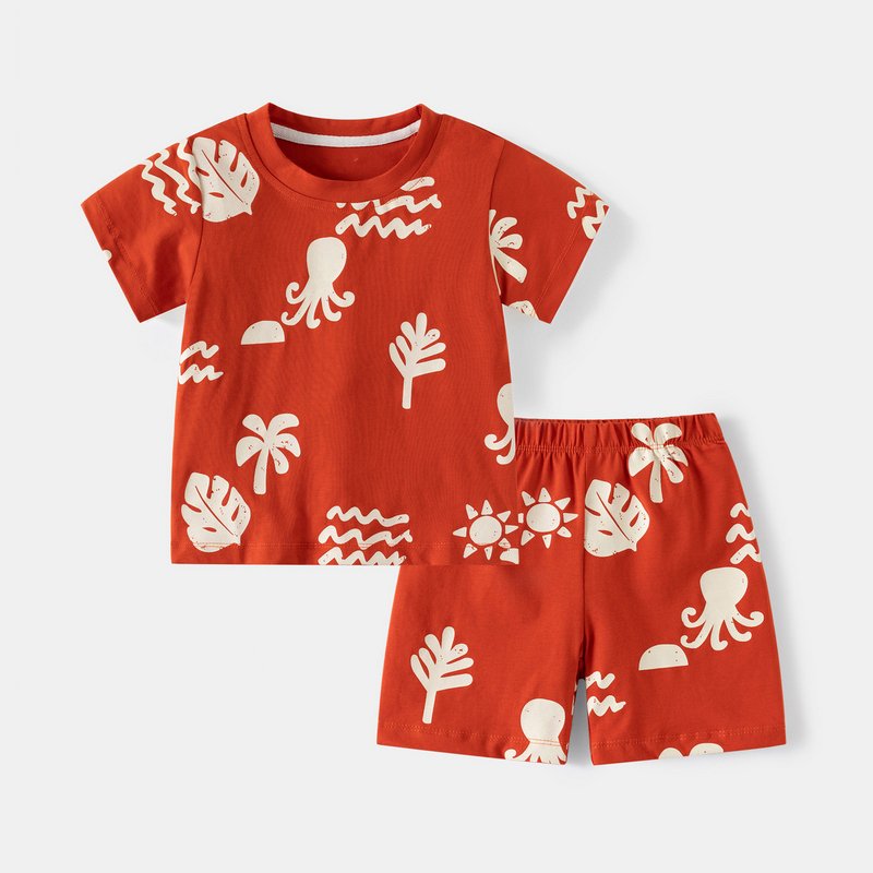 Boy Fashion Casual Cotton Printed Short-Sleeve T-Shirt Loose Shorts Two-Piece Set