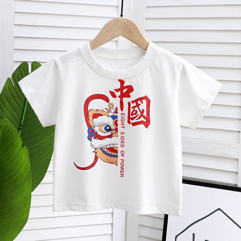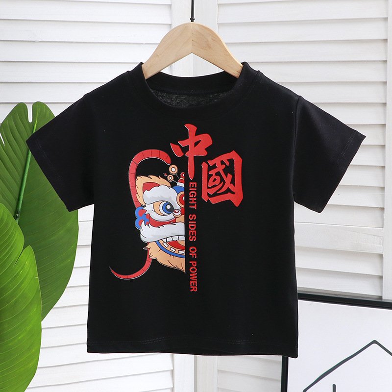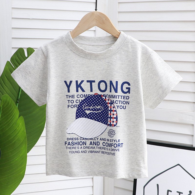 Boy Fashion Casual Printed Solid Color Cotton Short-Sleeve T-Shirt