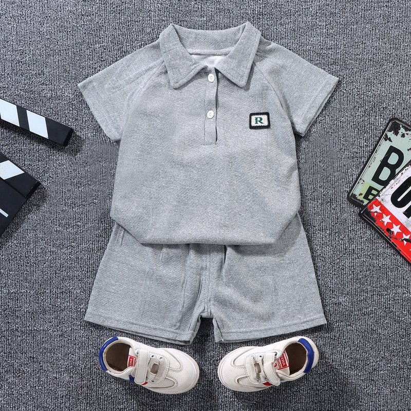 Boy Fashion Short-Sleeved Polo Shirt Two-Piece Set