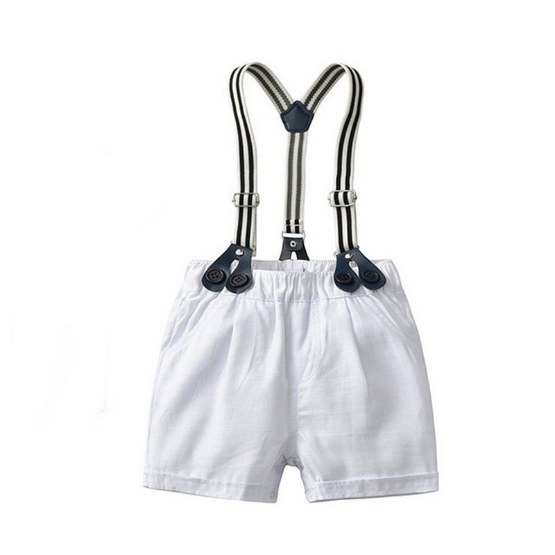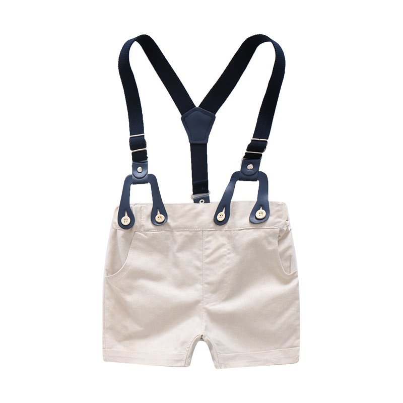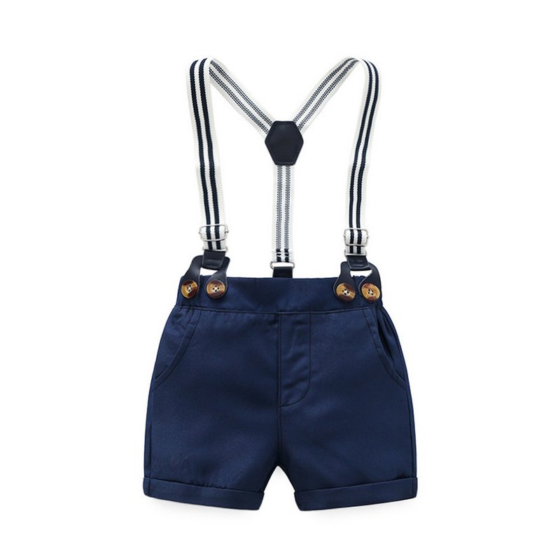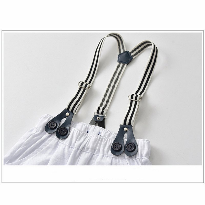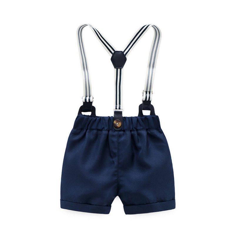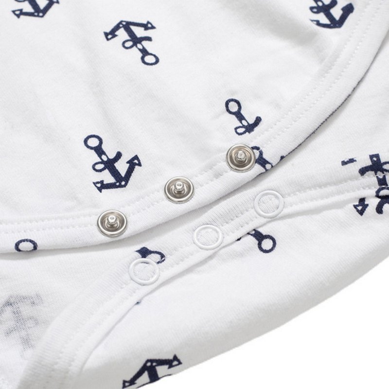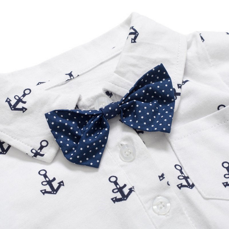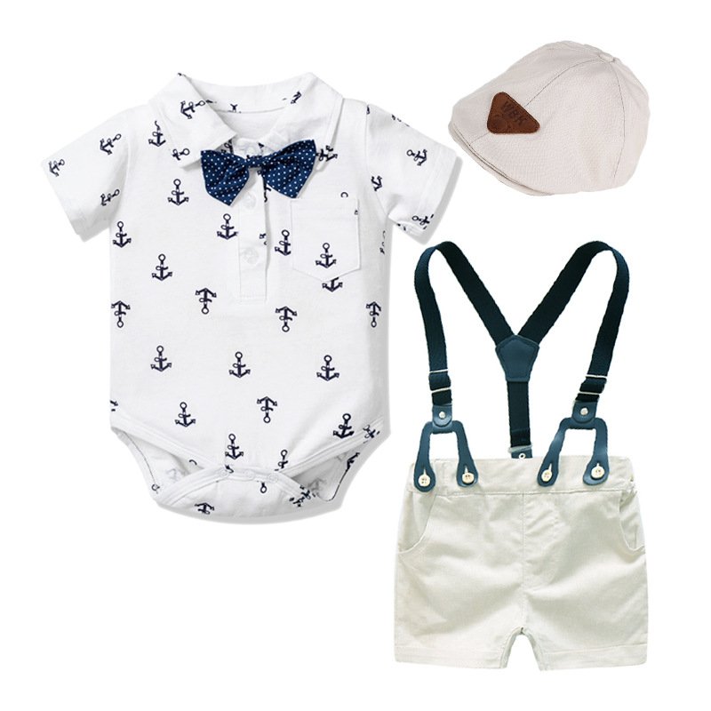 Boy Gentleman Anchor Print Romper And Overalls With Hat Set