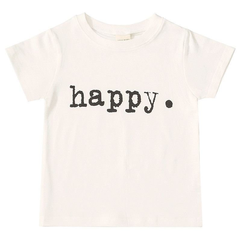 Boy Girl Happy Print Short Sleeves Casual Tee