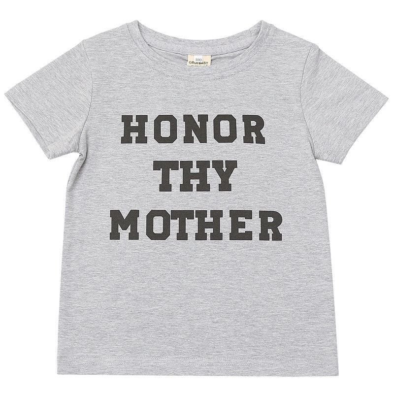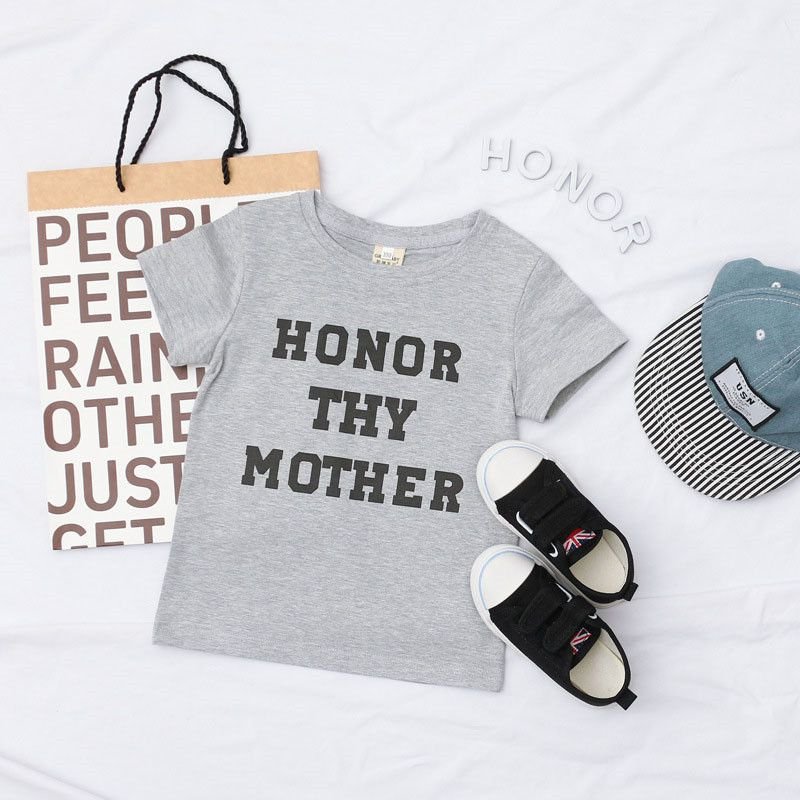 Boy Girl Letter Print Short Sleeves Grey T-Shirt