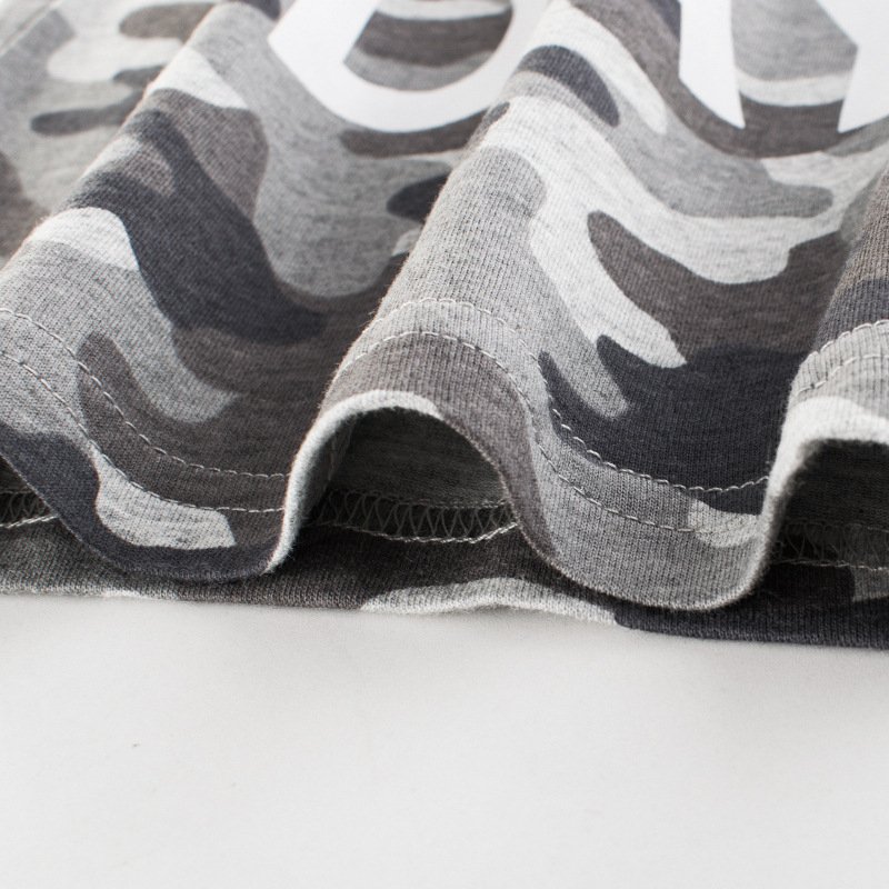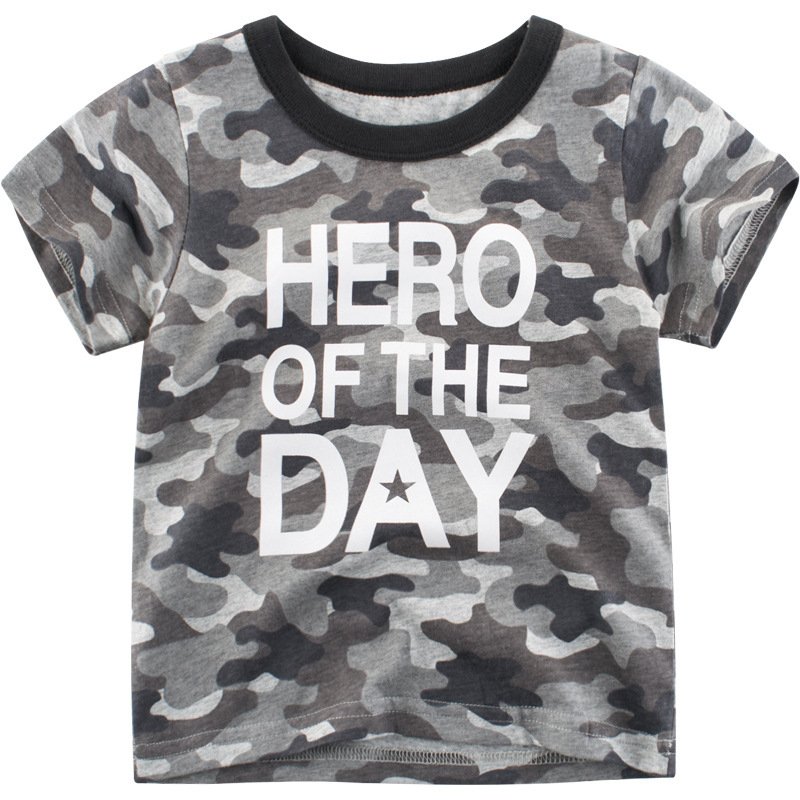 Boys Basic Camouflage Letter Round Neck Short-sleeved T-Shirt
