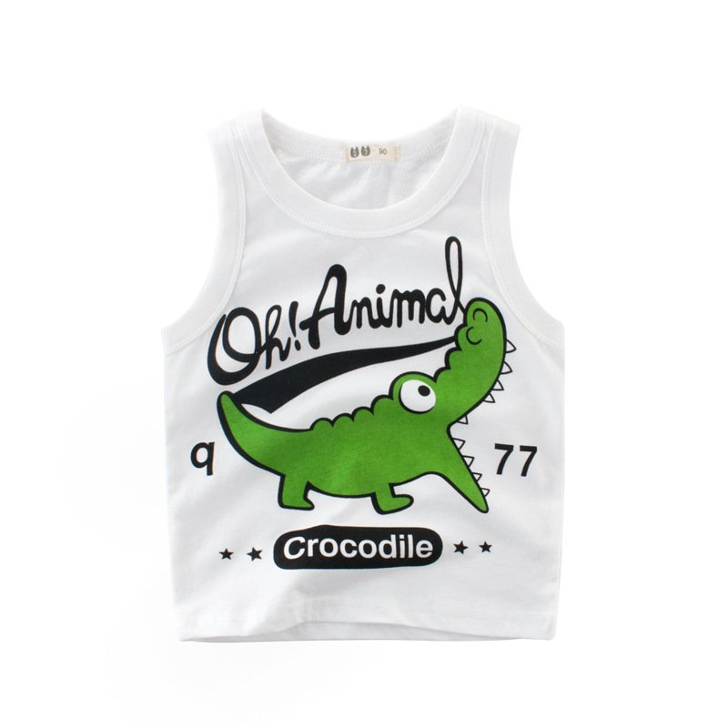 Boys Basic Cartoon Crocodile Letter Round Neck Vest