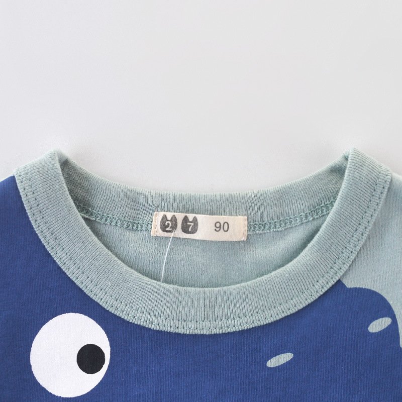 Boys Basic Cartoon Dinosaur Round Neck Short-sleeved T-Shirt