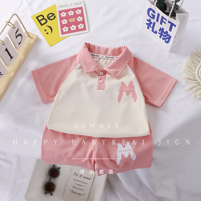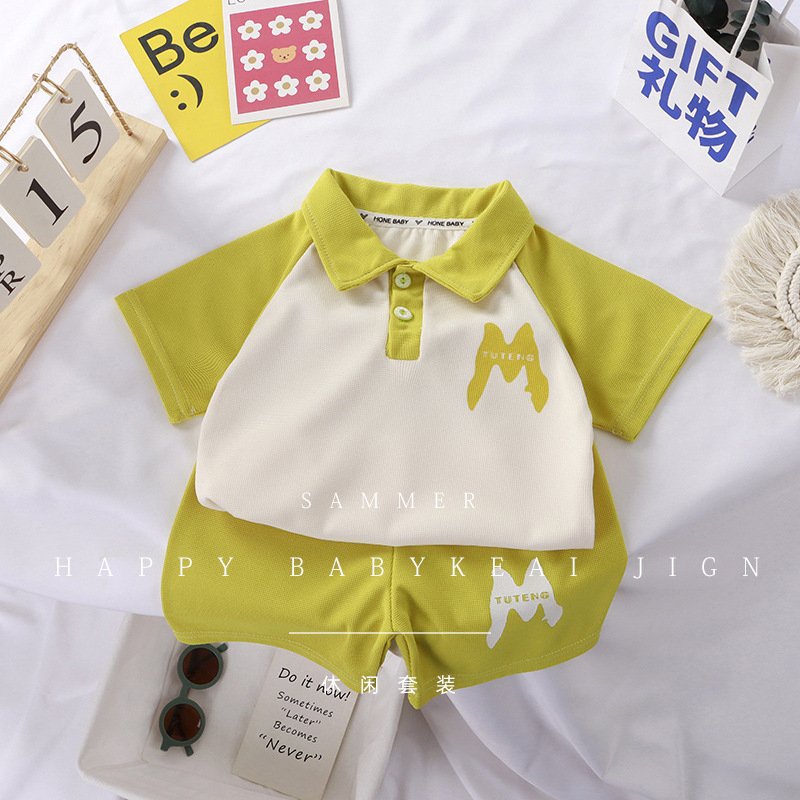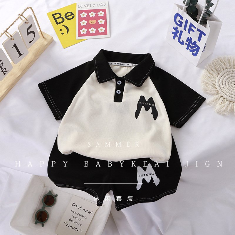Boys Casual Alphabet Print Lapel Polo Two-Piece Set