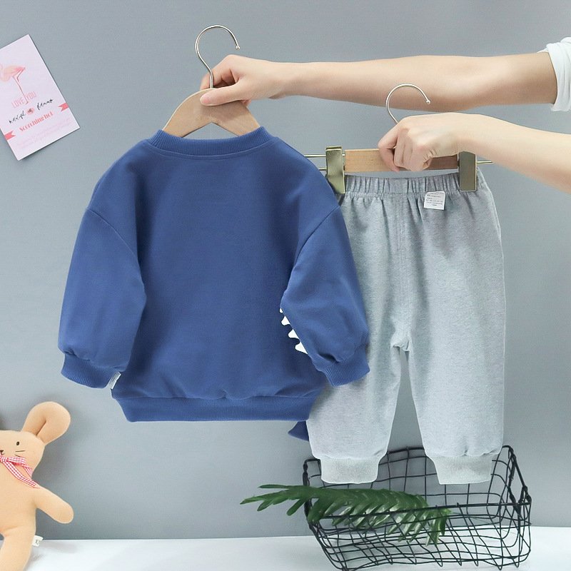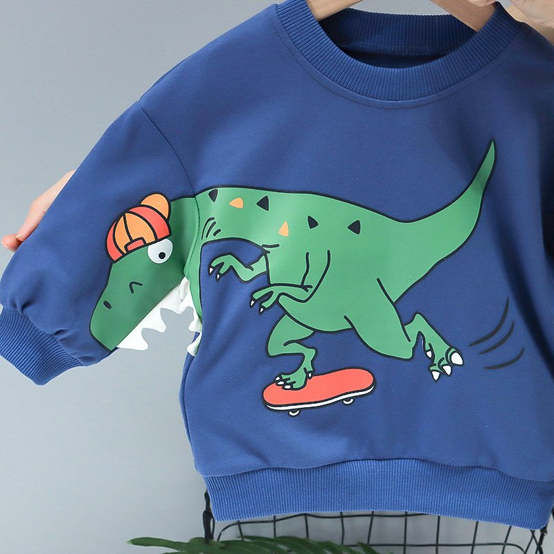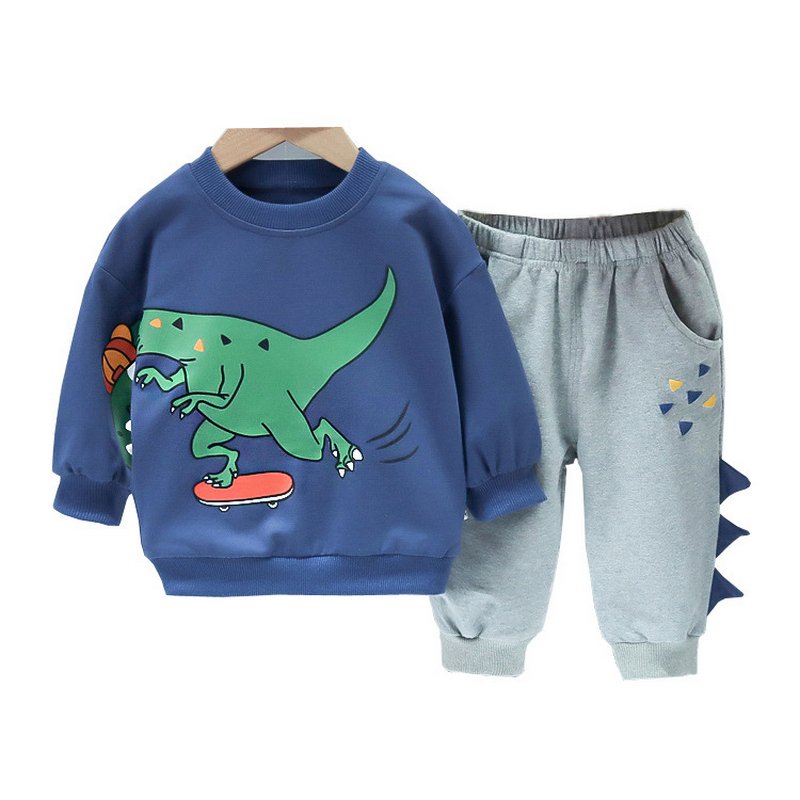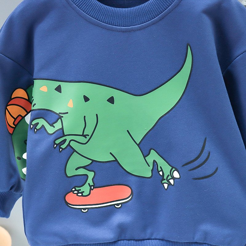 Boys Casual Cartoon Dinosaur Print Sweatshirt Two-Piece Set
