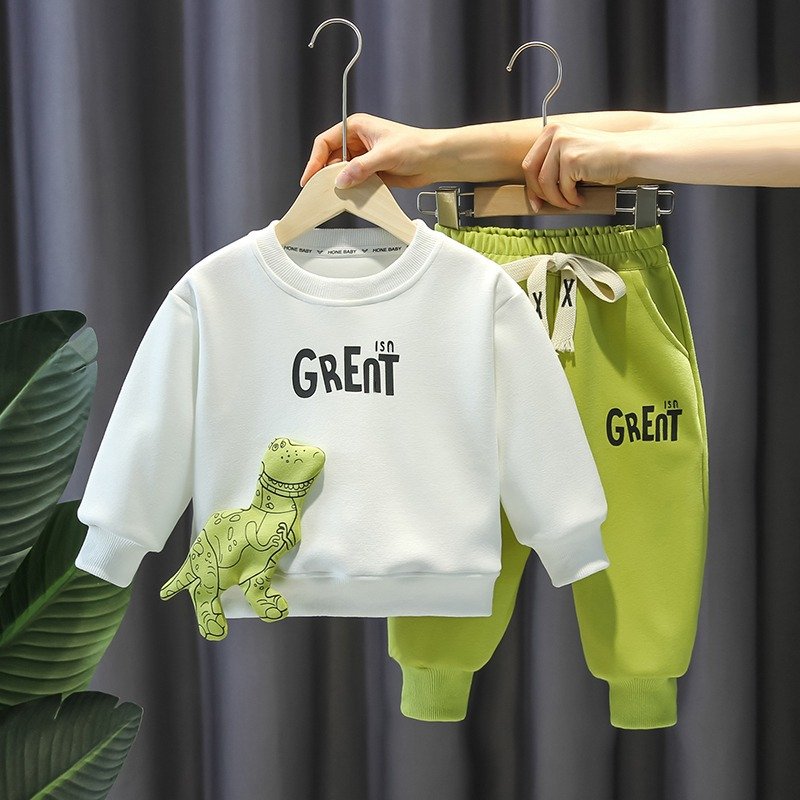 Boys Casual Cartoon Dinosaur Sweater Two-Piece Set