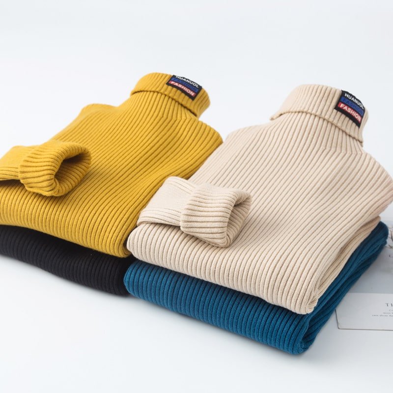 Boys Casual Letter Pattern Turtle Neck Vertical Striped Knitwear