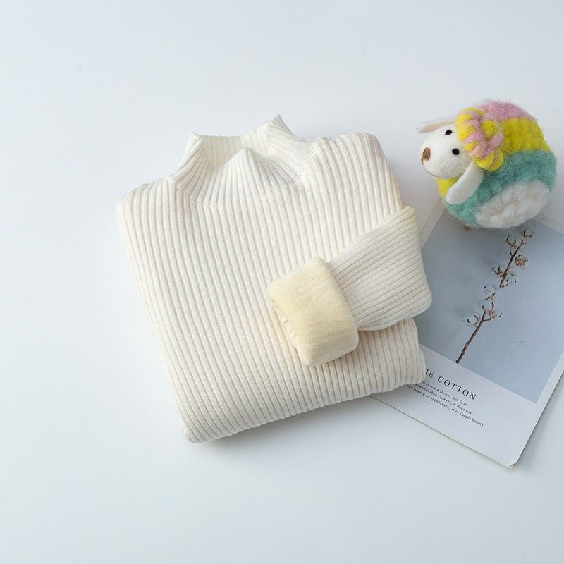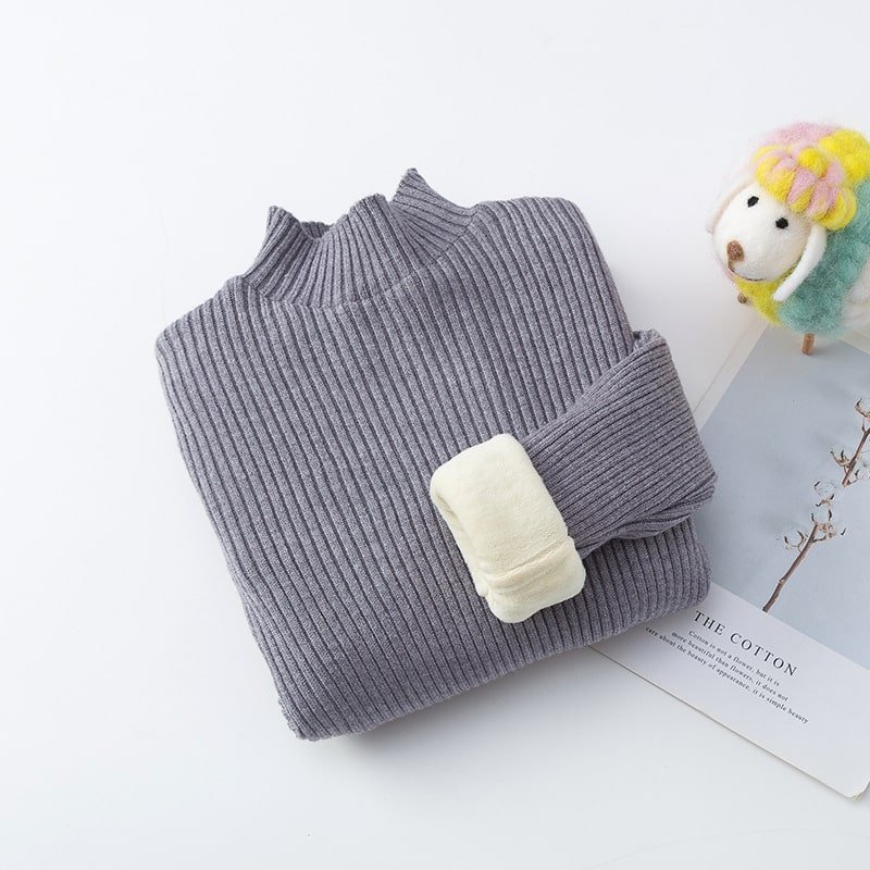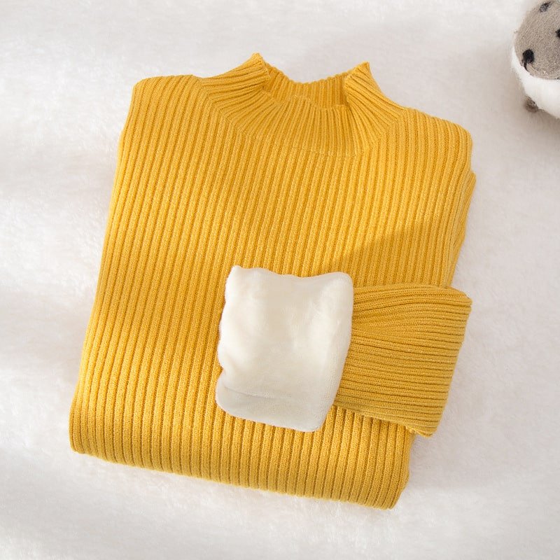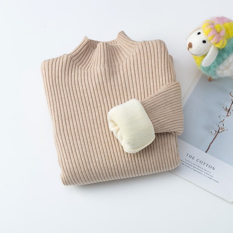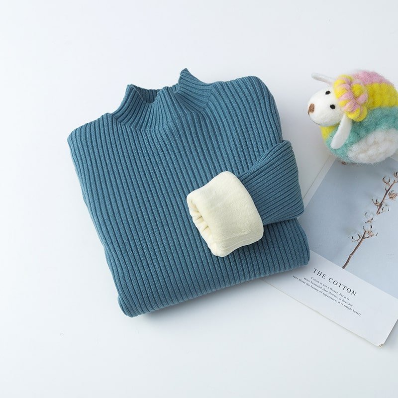 Boys Casual Long Sleeve Vertical Striped Fleece-lined Knitwear