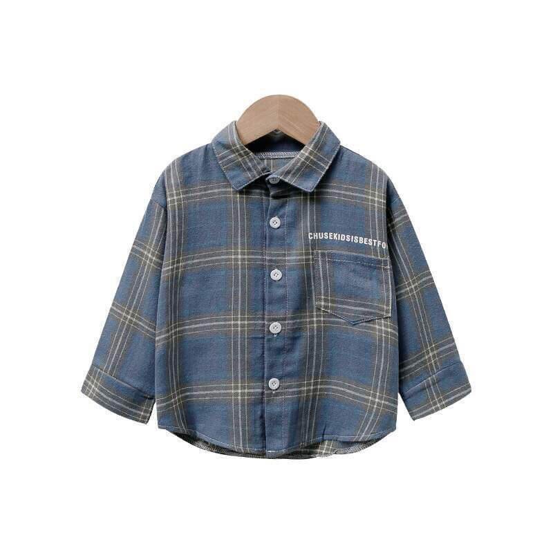 Boys Casual Single-breasted Plaid Shirt