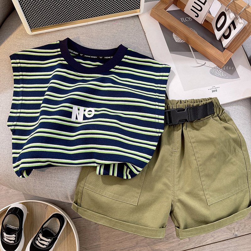 Boys Casual Stripe Print Tank Top And Shorts Two-Piece Set