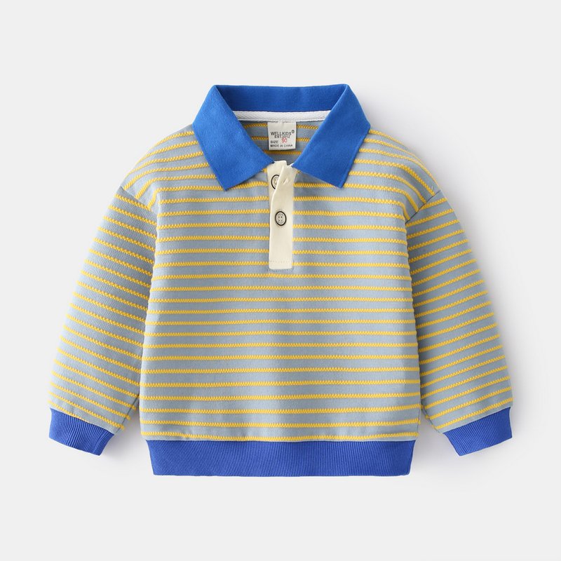 Boys Casual Striped Lapel Color Blocking Knit Sweatshirt