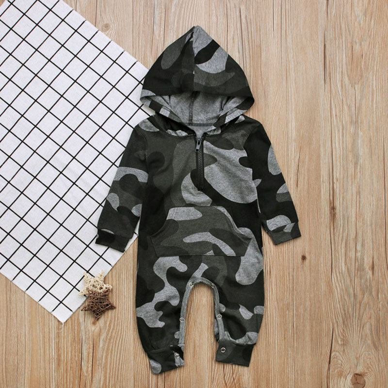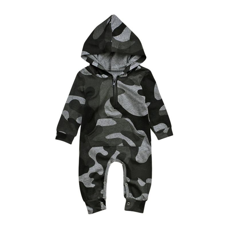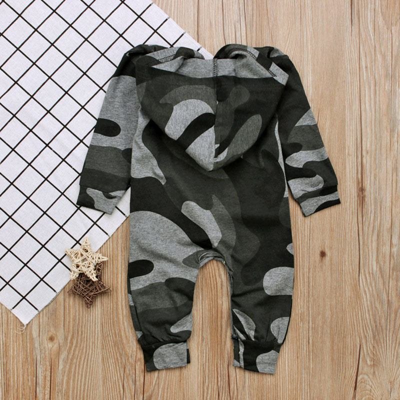 Boys Cotton Long Sleeves Camouflage Printed Hooded Romper