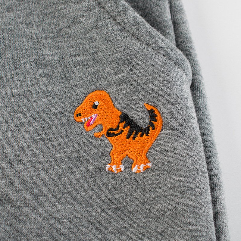 Boys Cute Basic Dinosaur Embroidery Plush Sweatpants