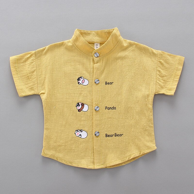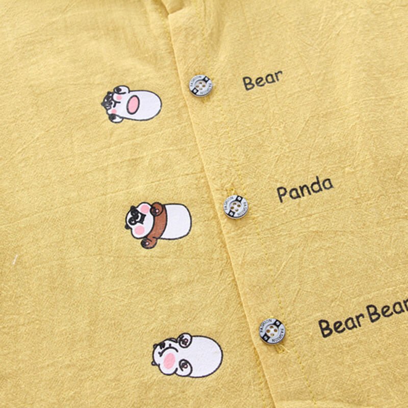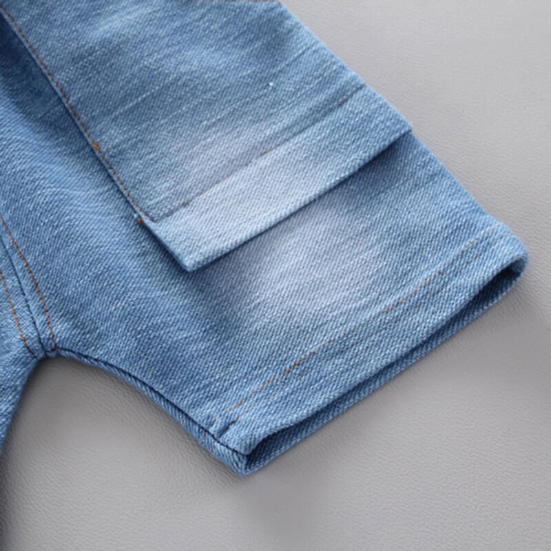 Boys Cute Cartoon Pattern Single-breasted Shirt And Denim Shorts
