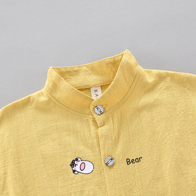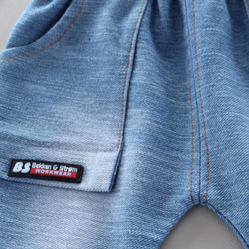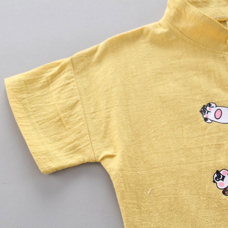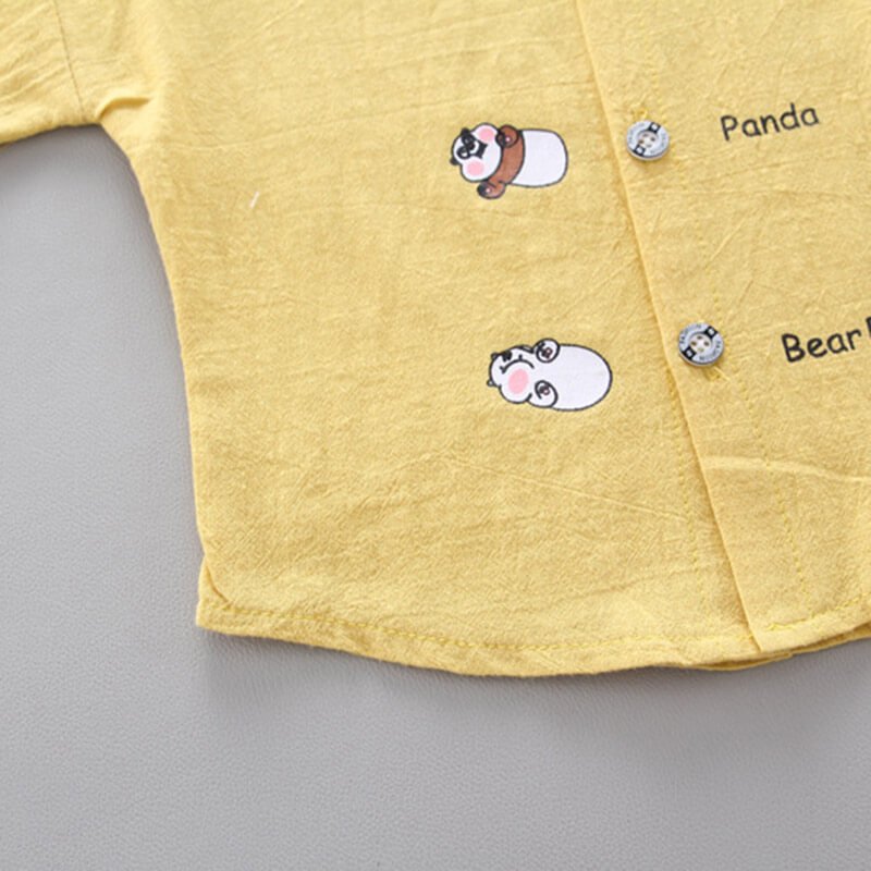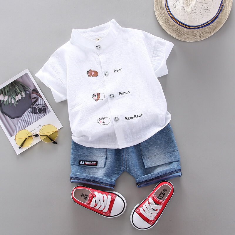 Boys Cute Cartoon Pattern Single-breasted Shirt And Denim Shorts