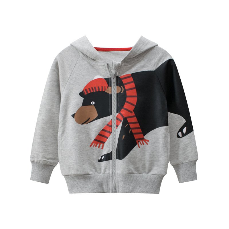 Boys Cute Casual Dinosaur Bear Pattern Letter Pattern Long Sleeve Zipper Rib Knit Hooded Coat
