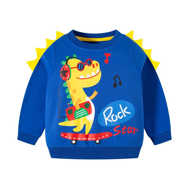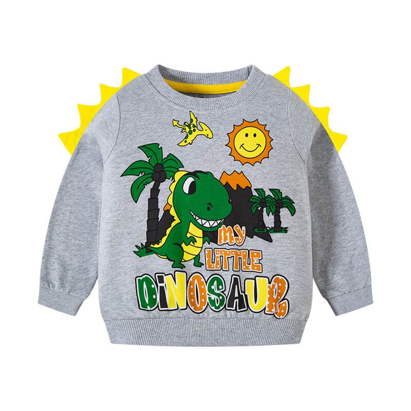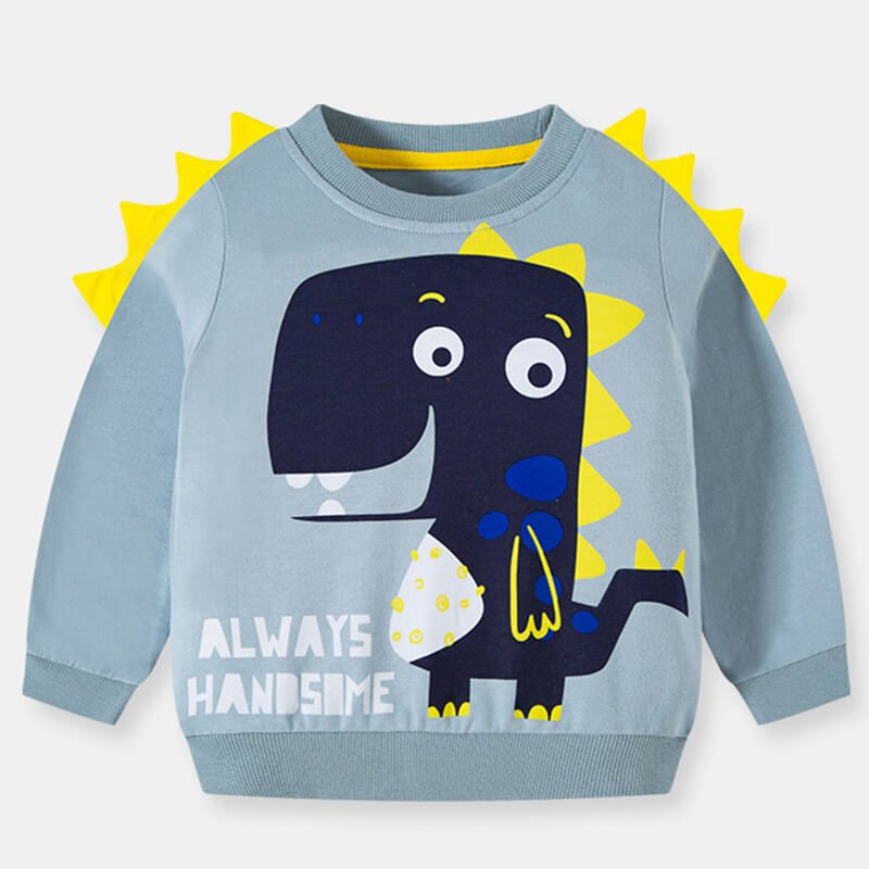 Boys Cute Round Neck Long Sleeve Cartoon Dinosaur Pattern Sweatshirt