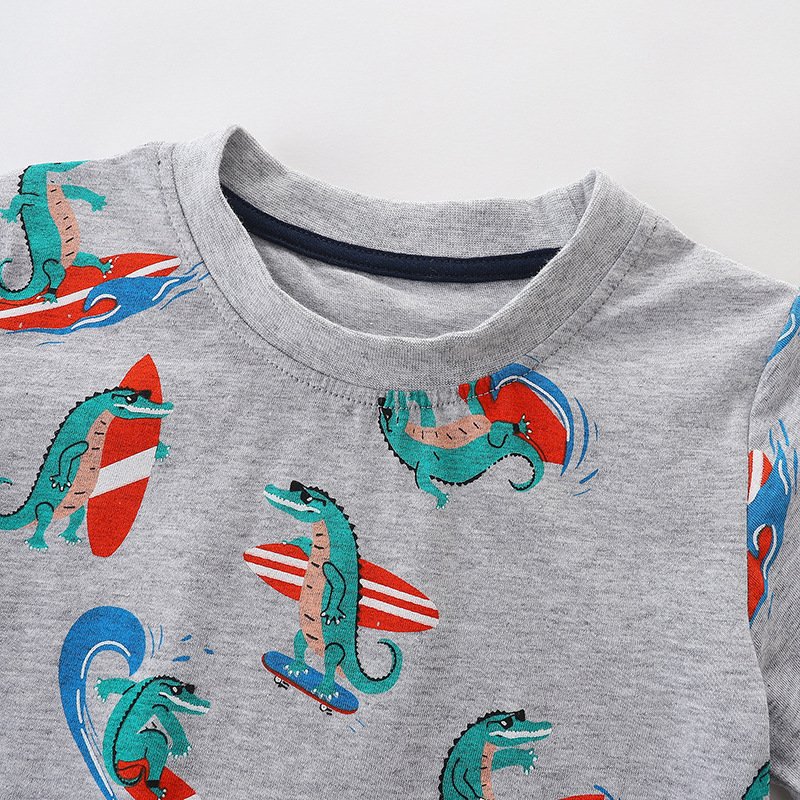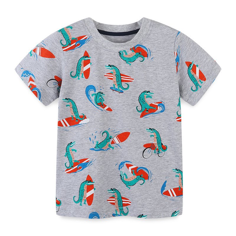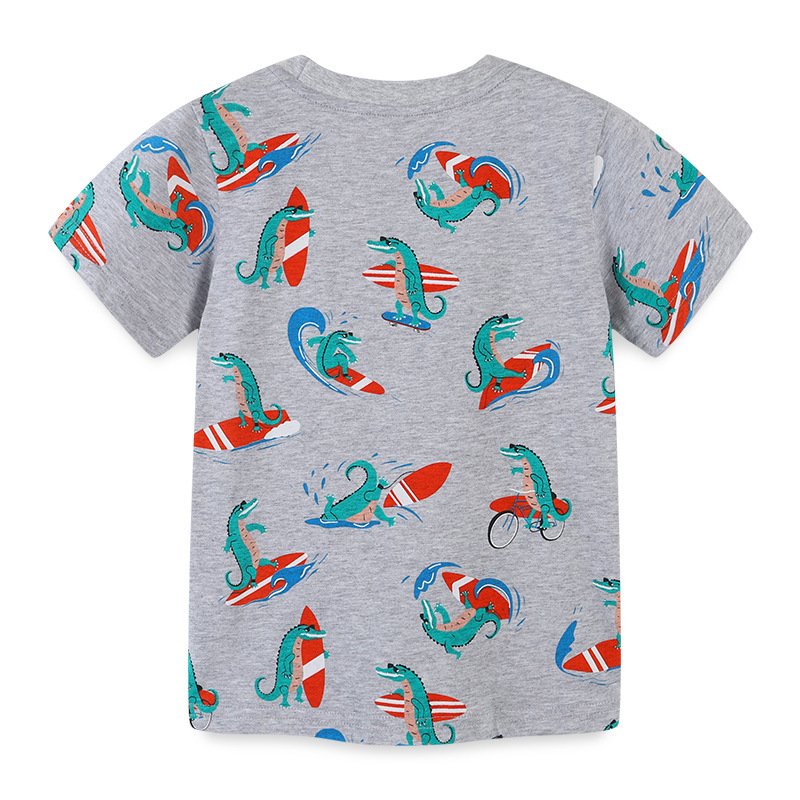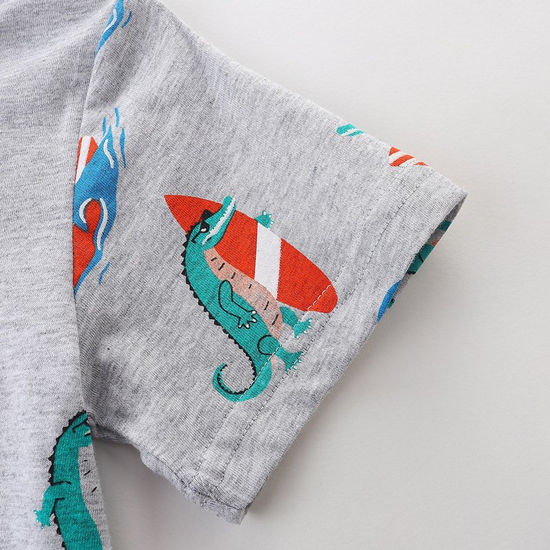 Boys Fashion Beach Style Cartoon Surfer Crocodile Print Cotton T-Shirt