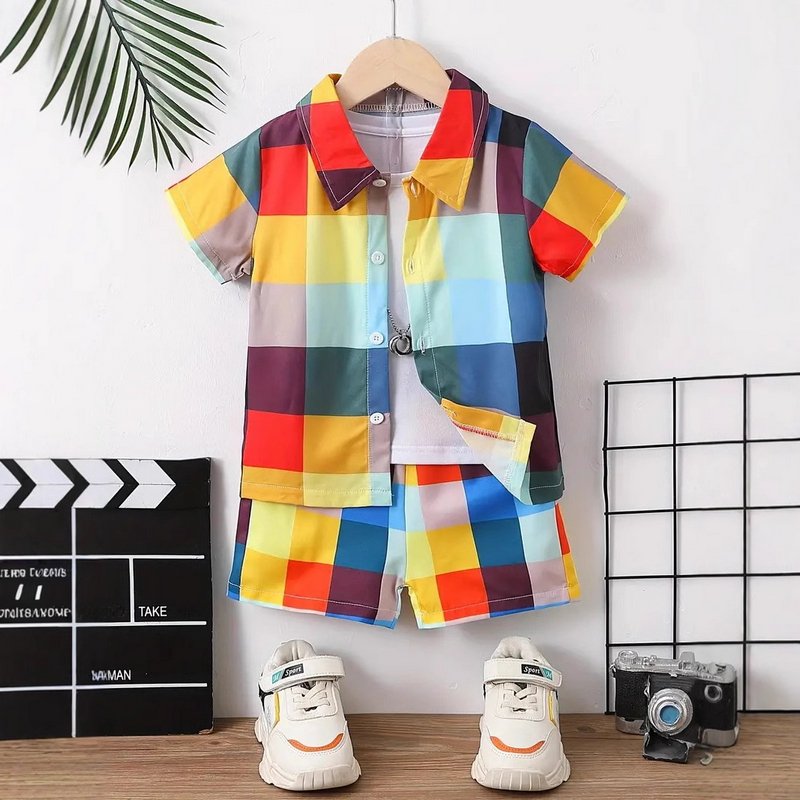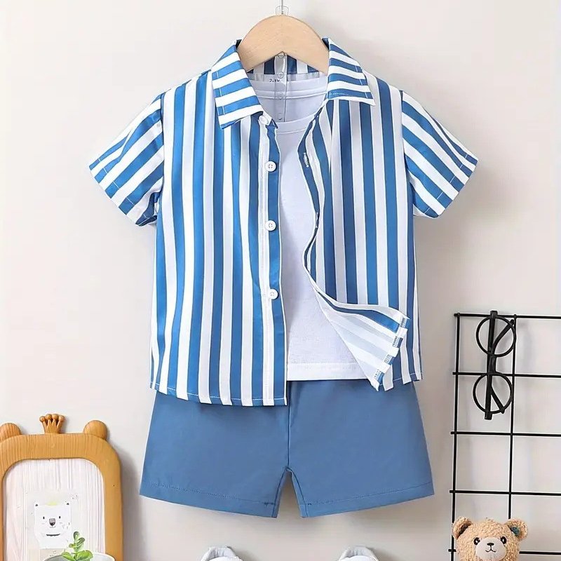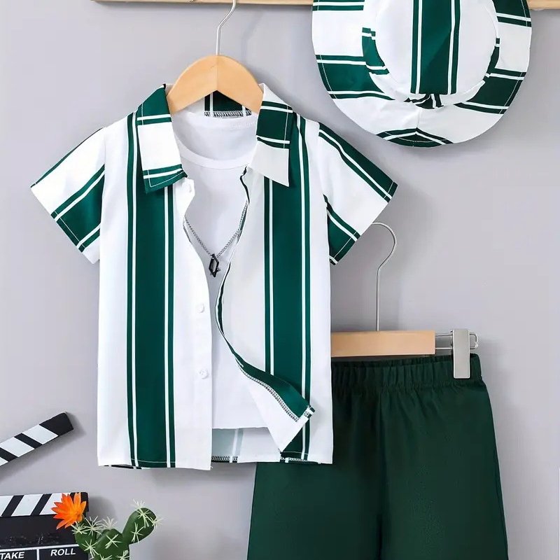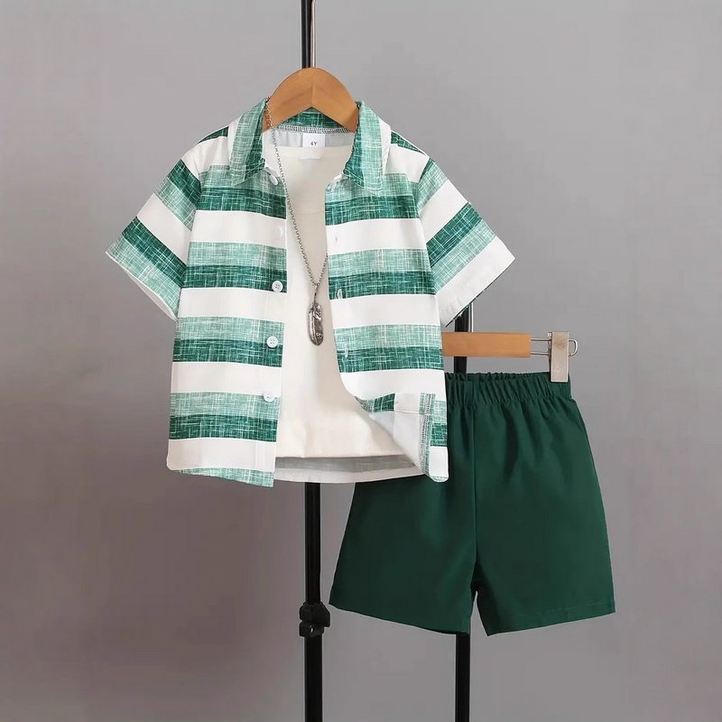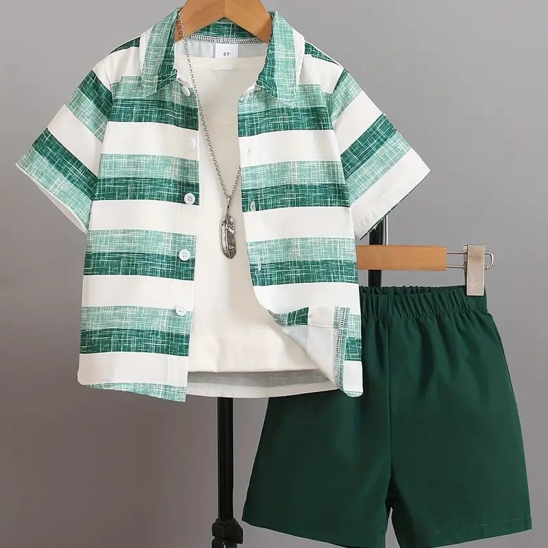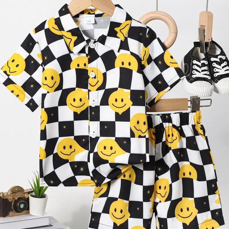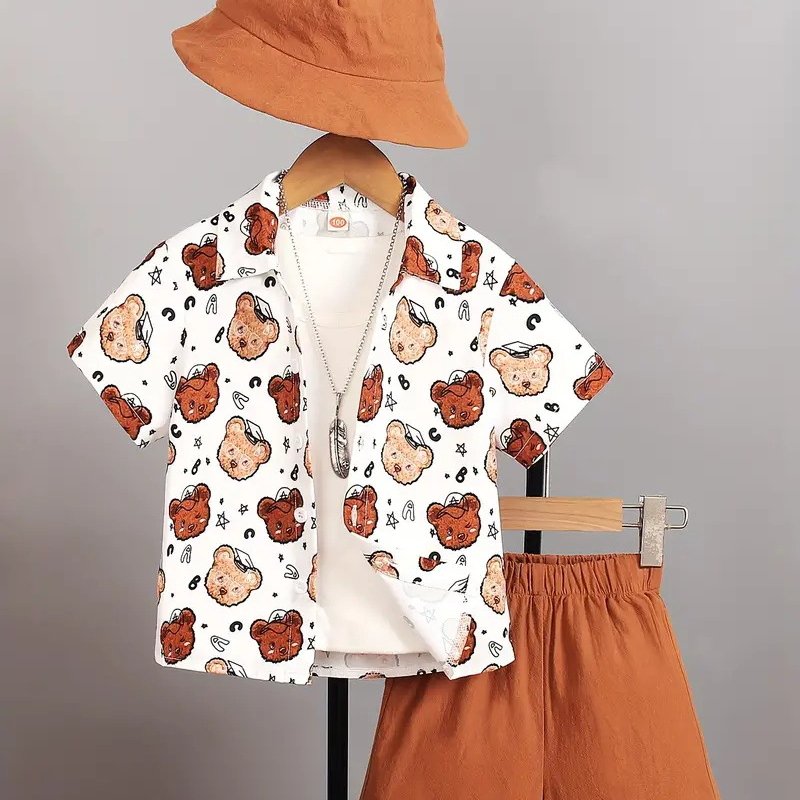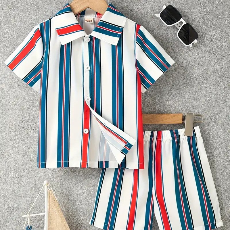 Boys Fashion Casual Vacation Printed Short-Sleeve Blouse Loose Shorts Two-Piece Set