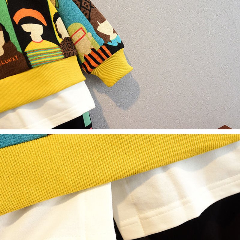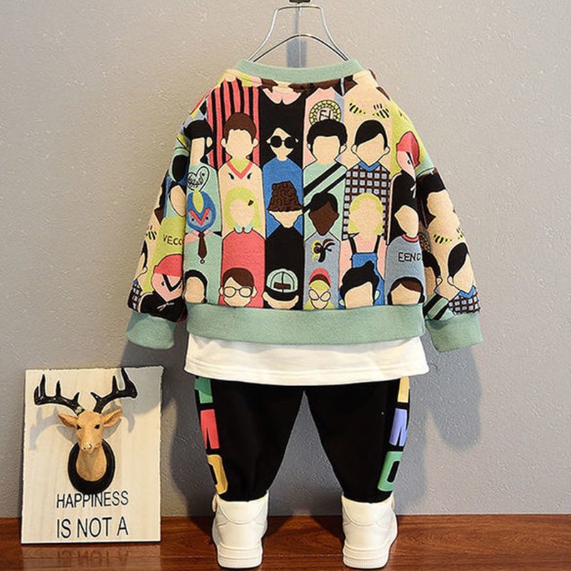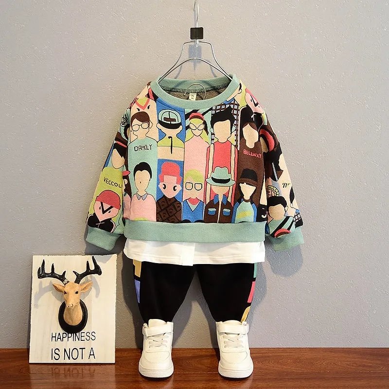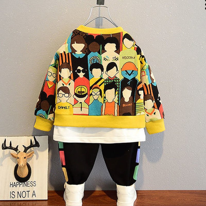 Boys Fashion Colorful Portrait Sweatshirt And Pantsset