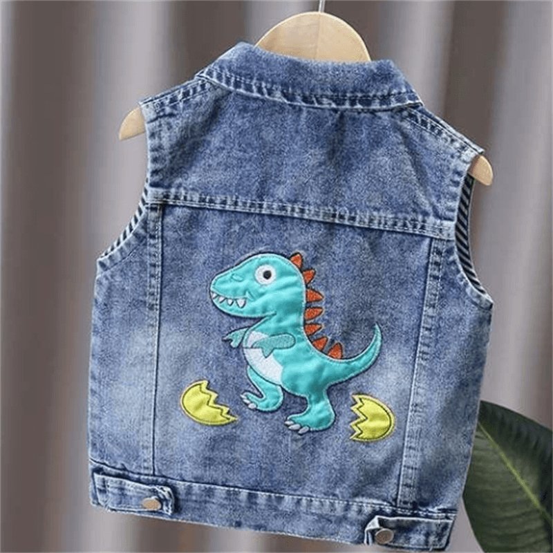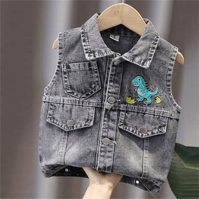 Boys Fashion Dinosaur Pattern Single-breasted Denim Vest