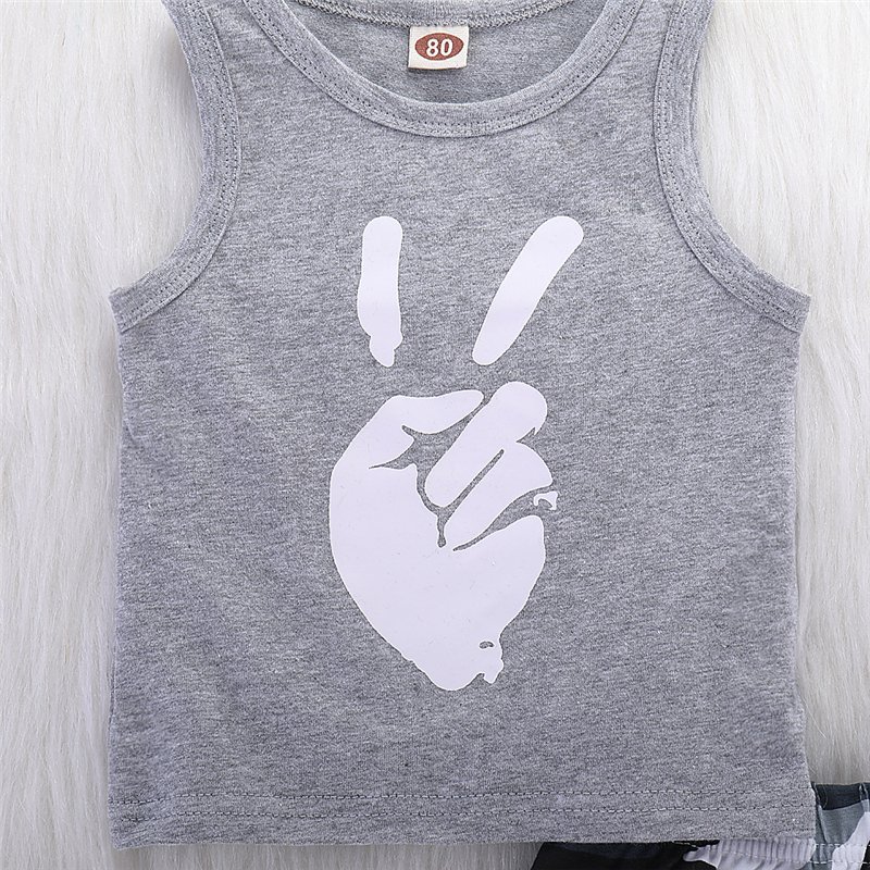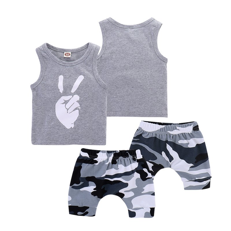 Boys Fashion Gesture Pattern Sleeveless Vest And Camouflage Shorts Set