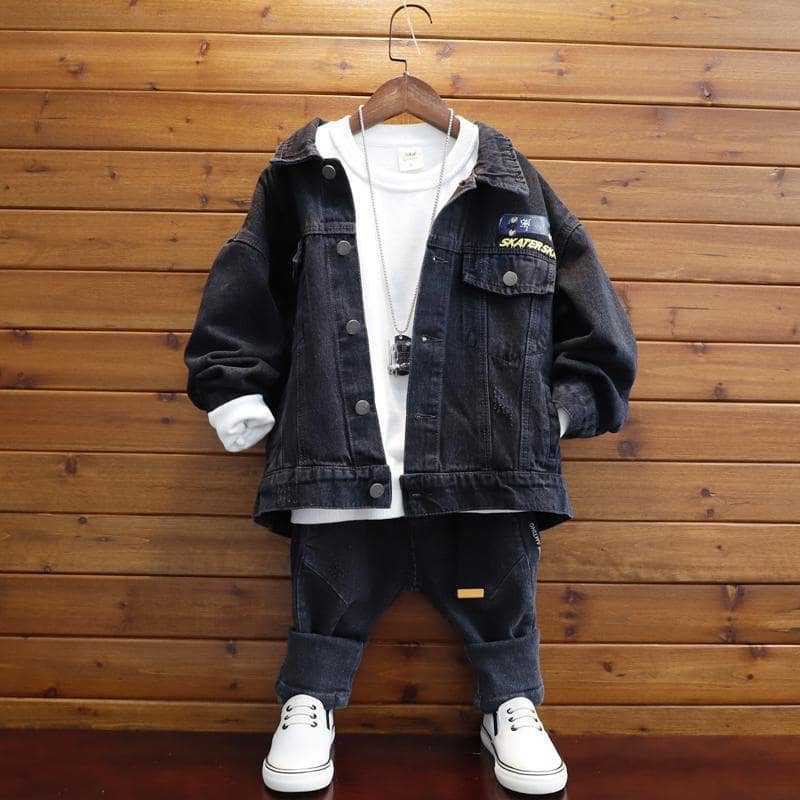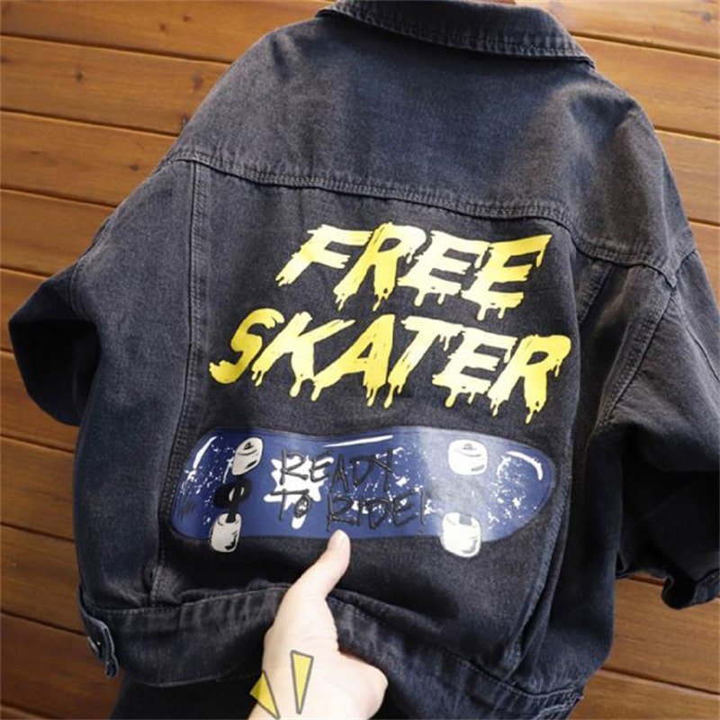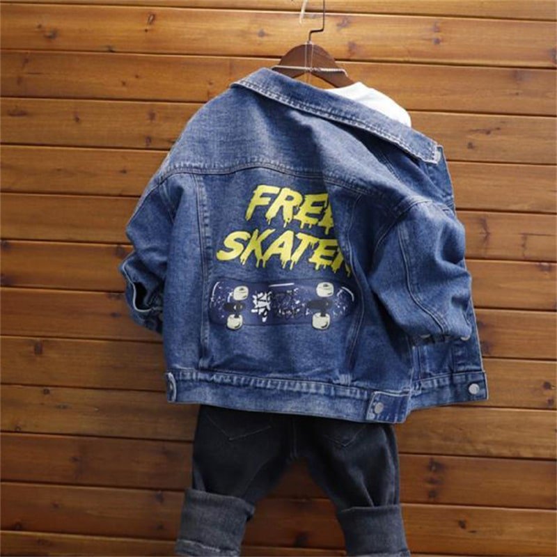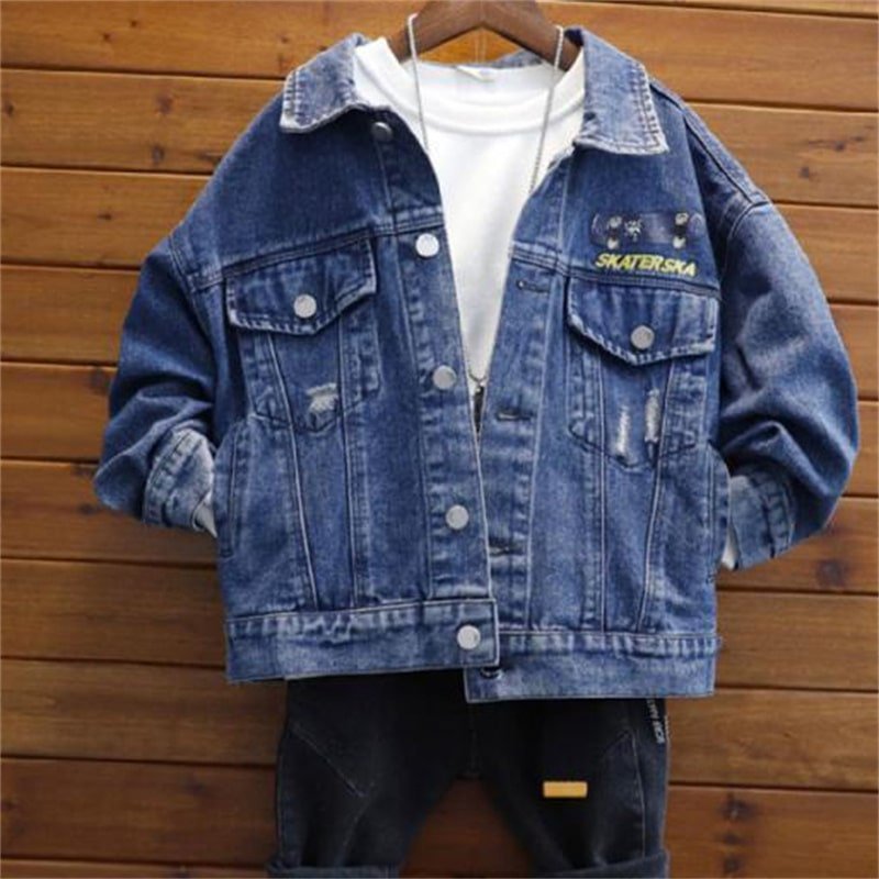 Boys Fashion Graphic Printed Single-breasted Denim Jacket