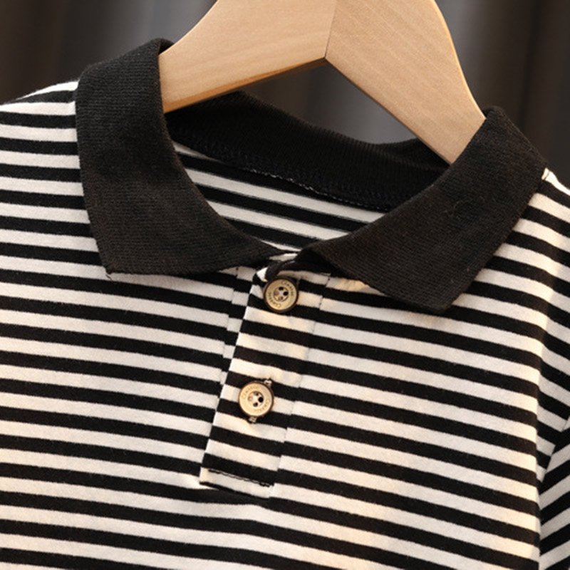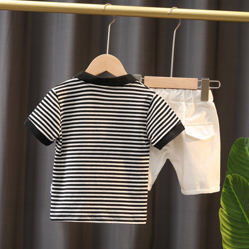 Boys Fashion Lapel Striped T-Shirt And Shorts Set