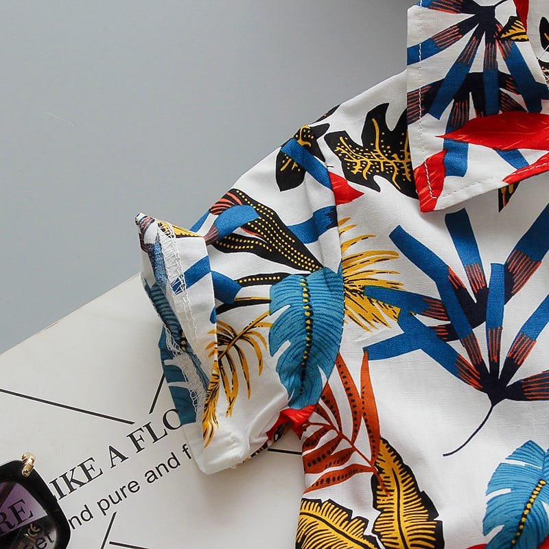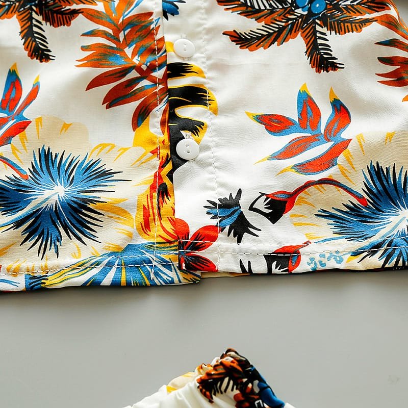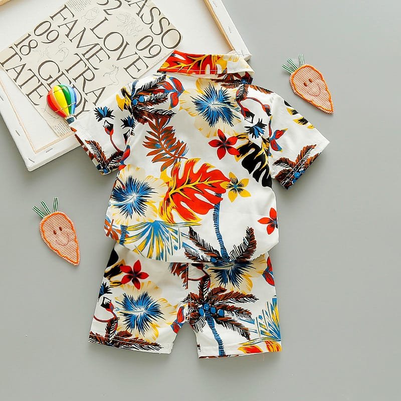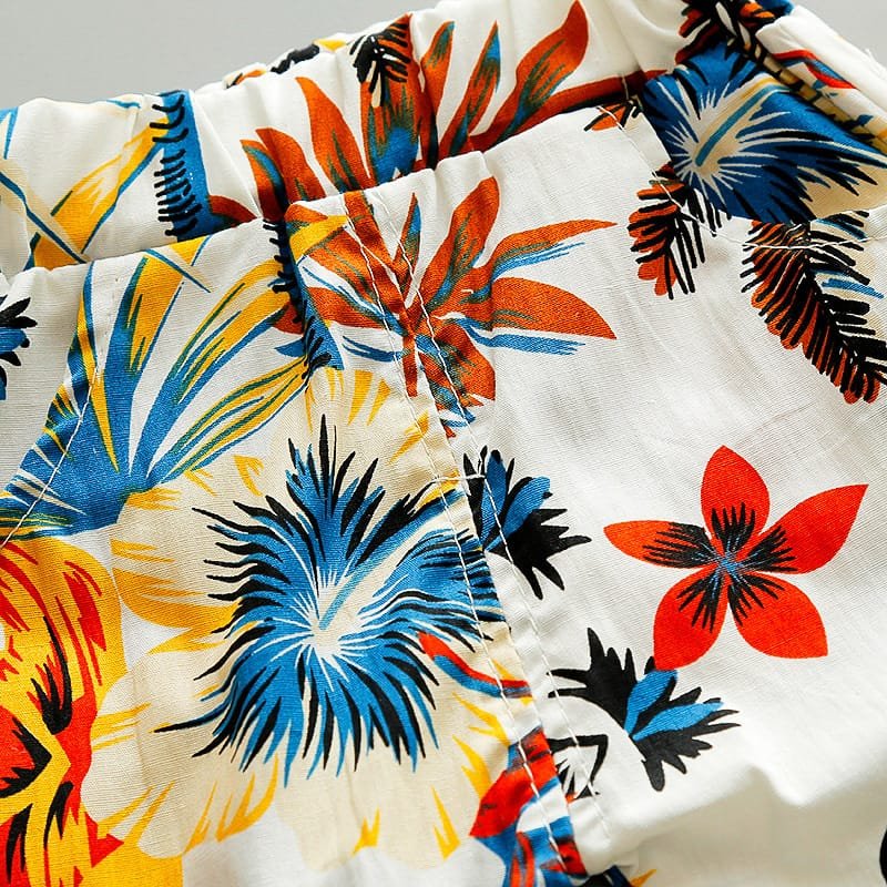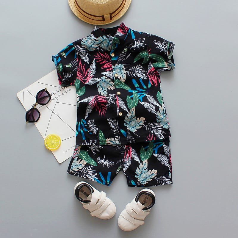 Boys Fashion Leaves Flower Printed Shirt And Shorts Set