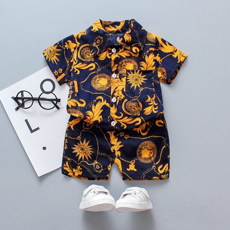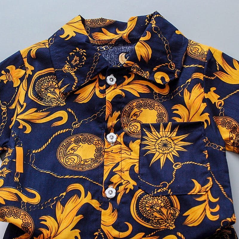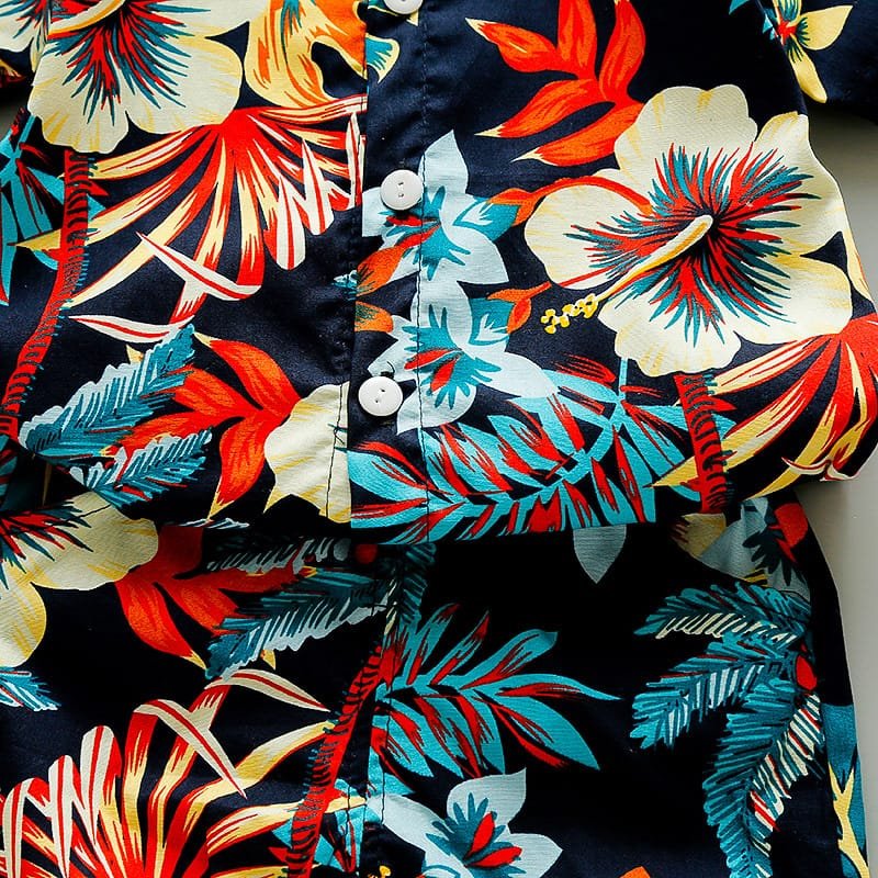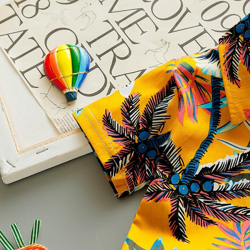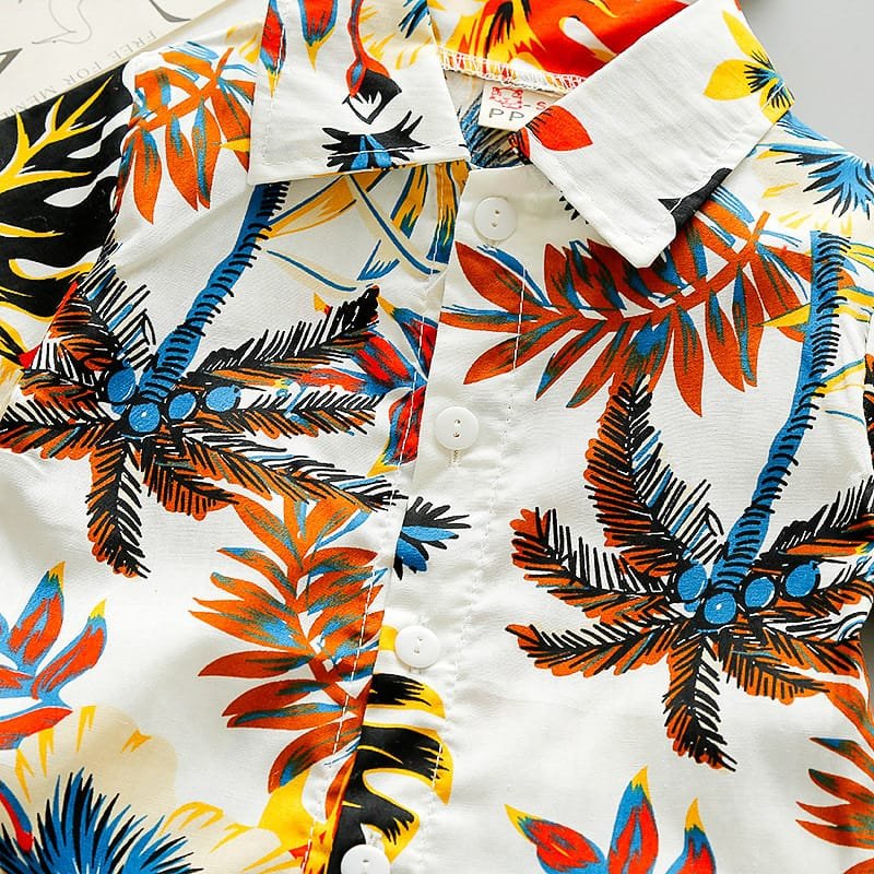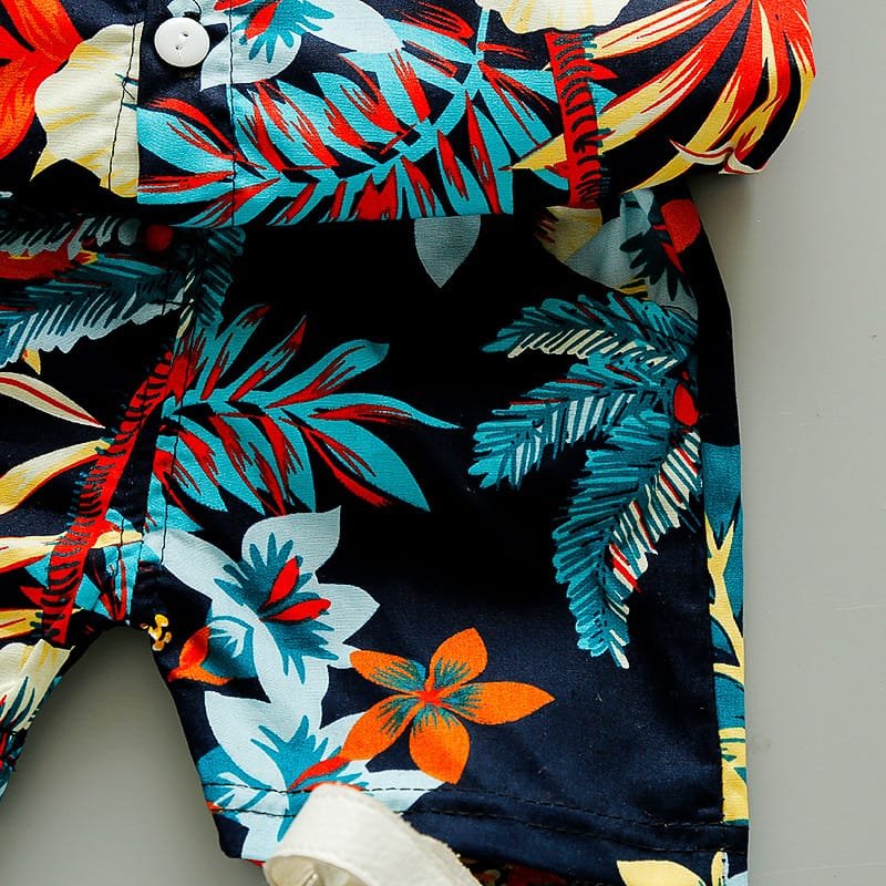 Boys Fashion Leaves Flower Printed Shirt And Shorts Set