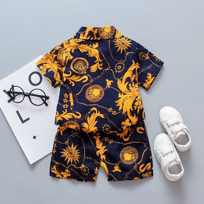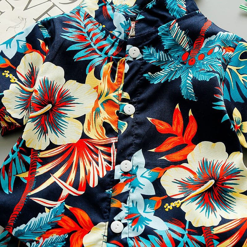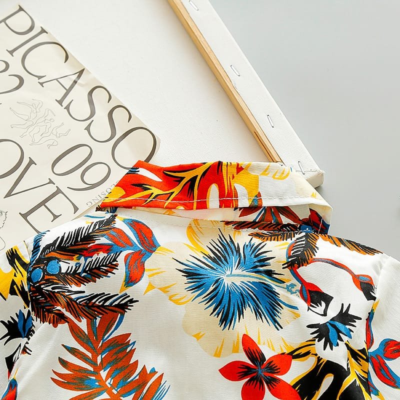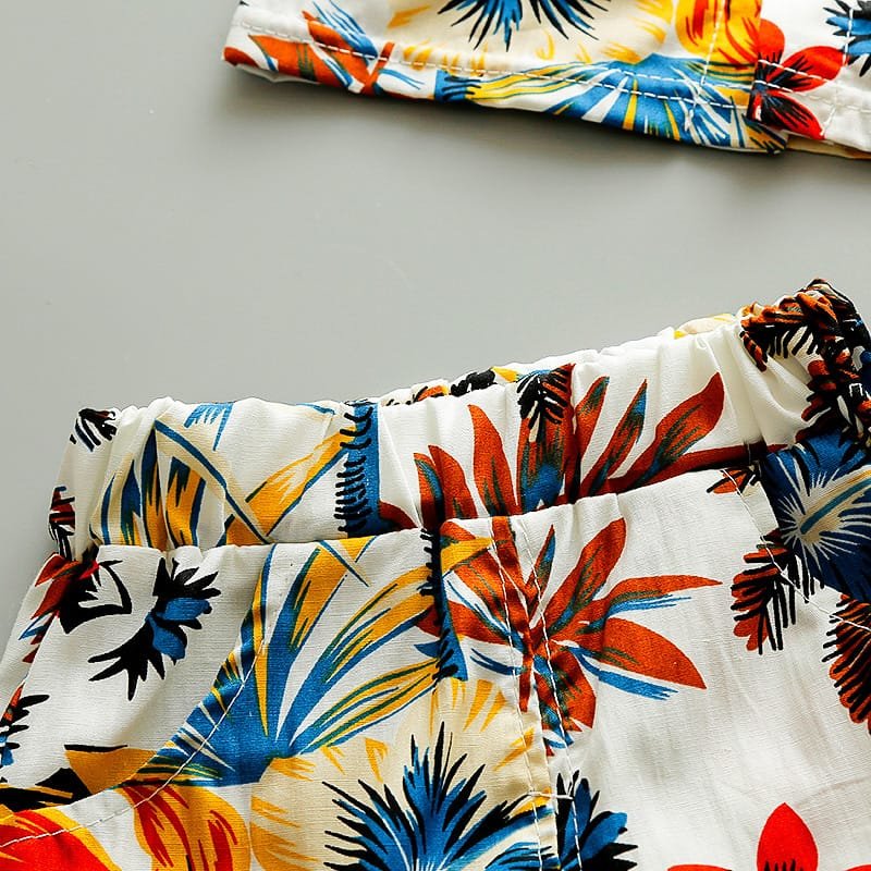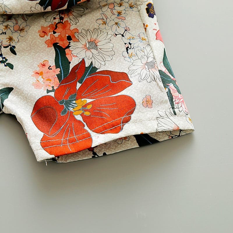 Boys Fashion Leaves Flower Printed Shirt And Shorts Set