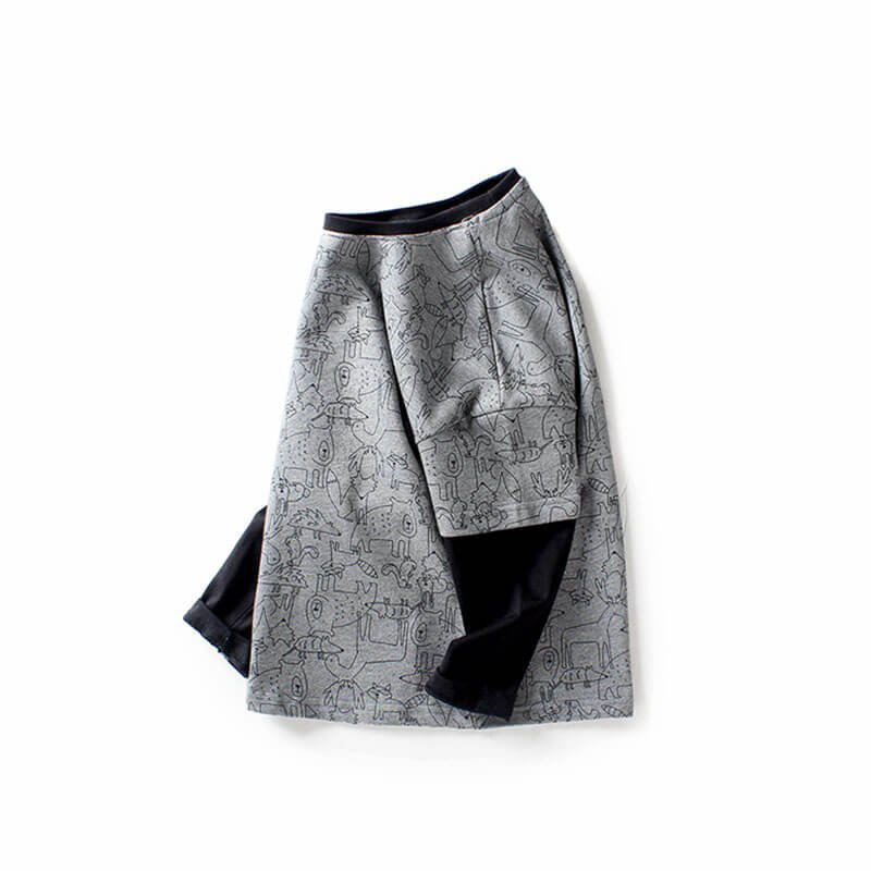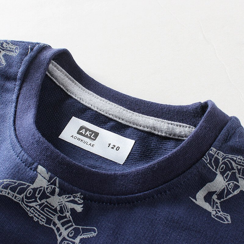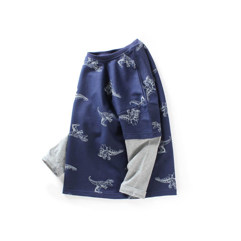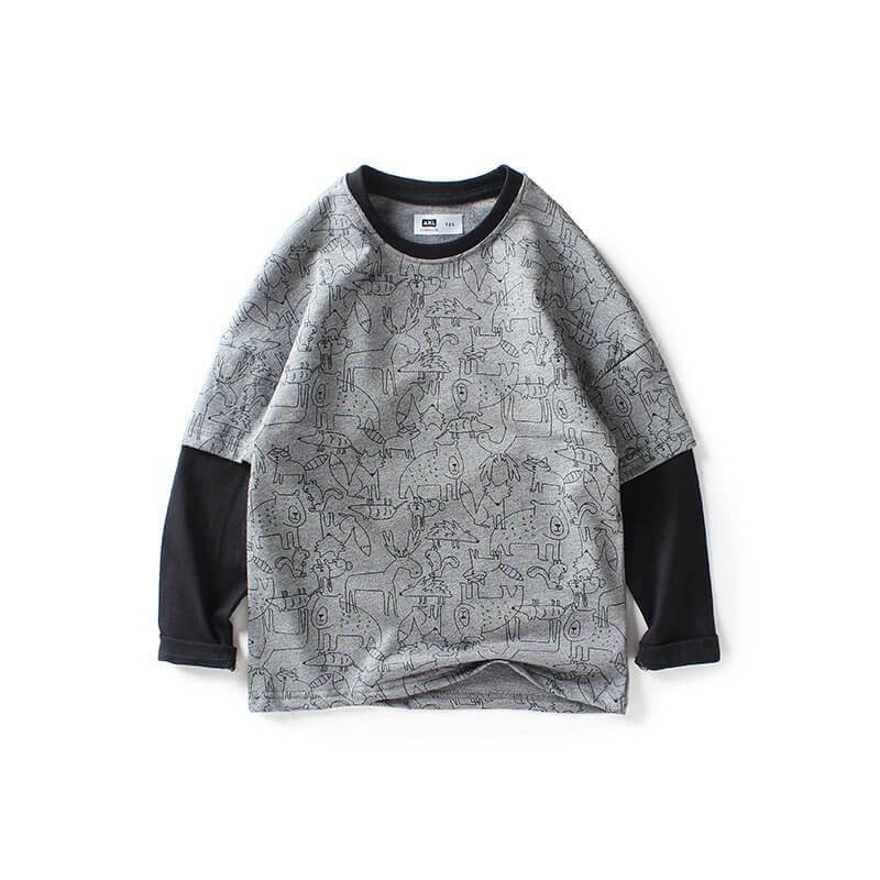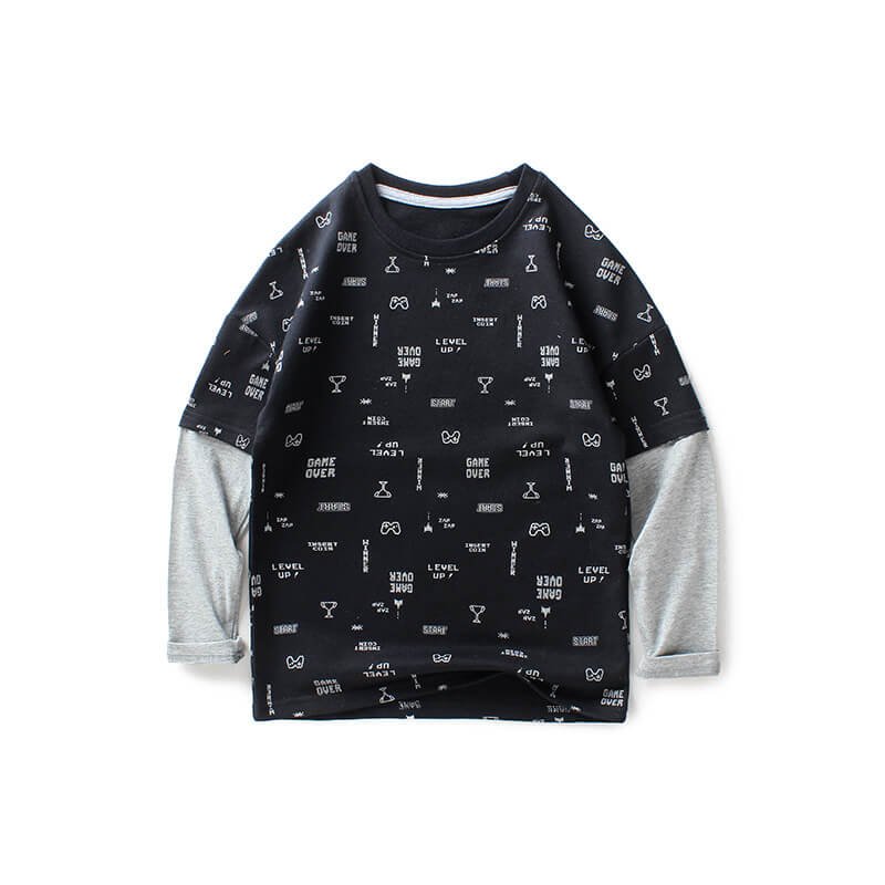 Boys Fashion Long-sleeves Cartoon Pattern Fake Two Piece T-Shirt