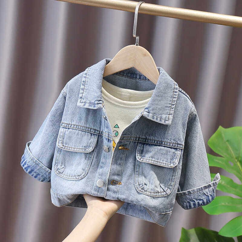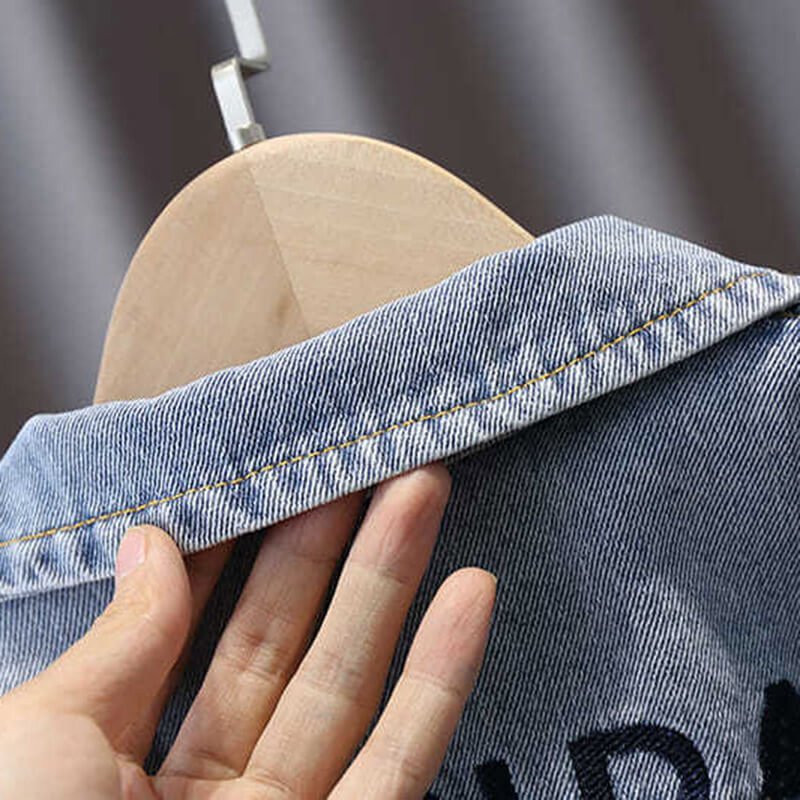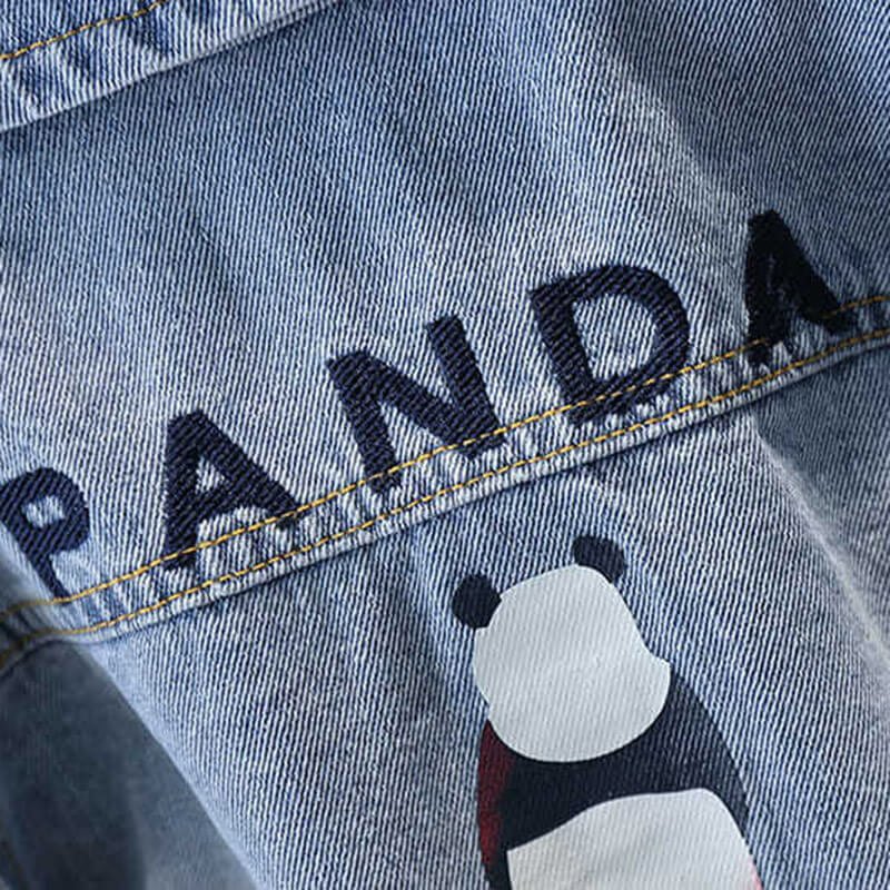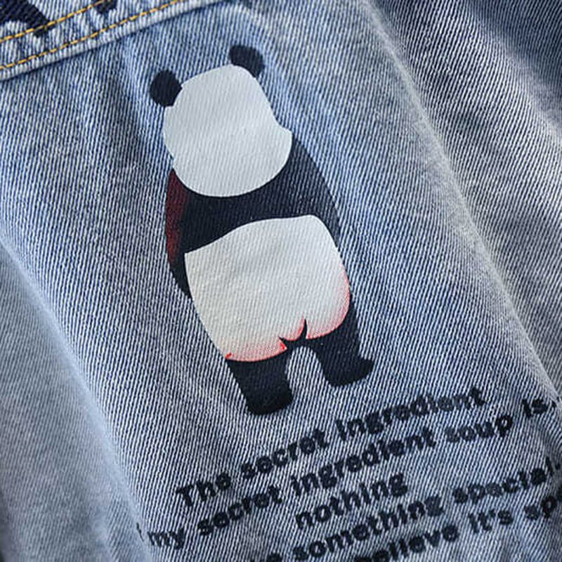 Boys Fashion Panda Letter Pattern Denim Coat
