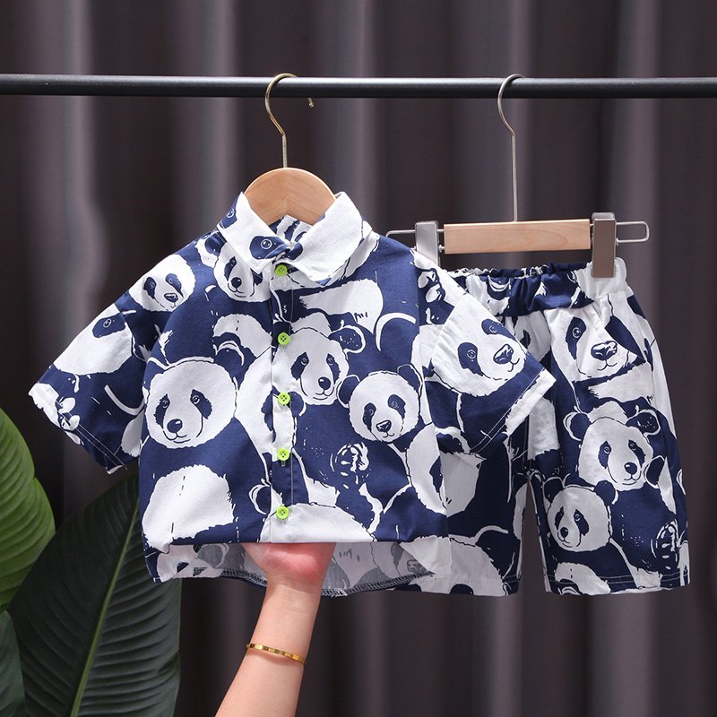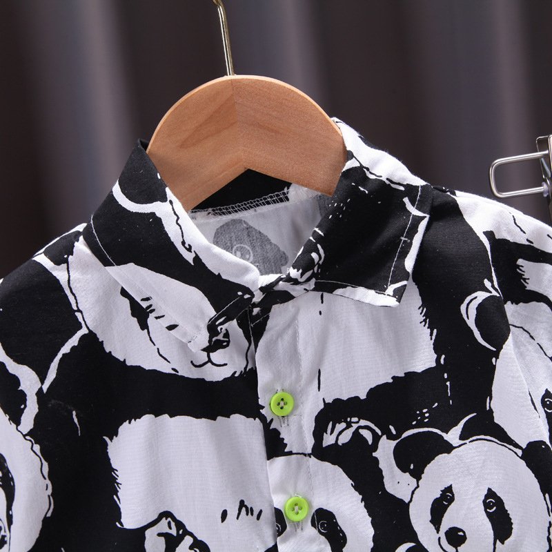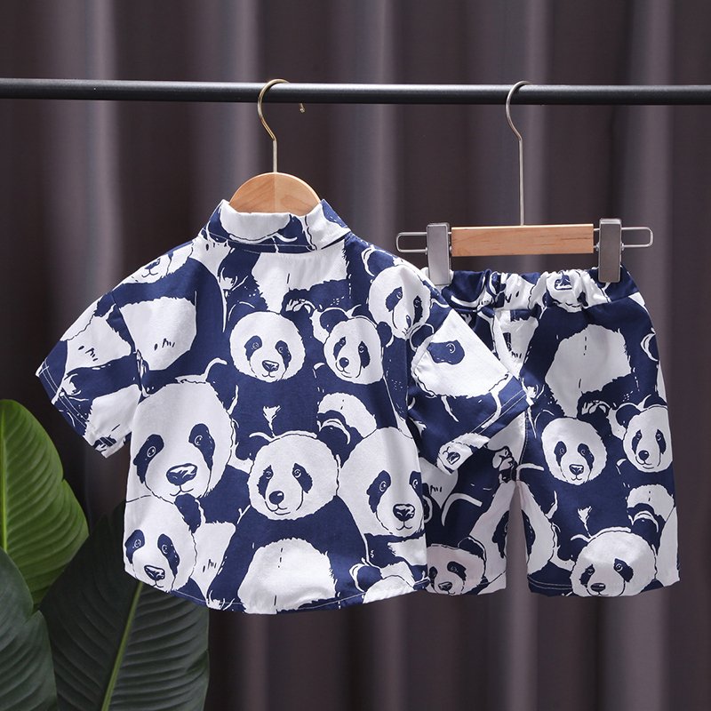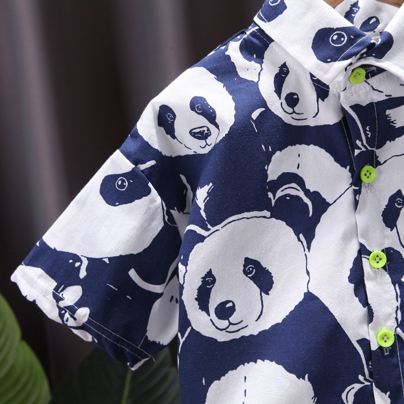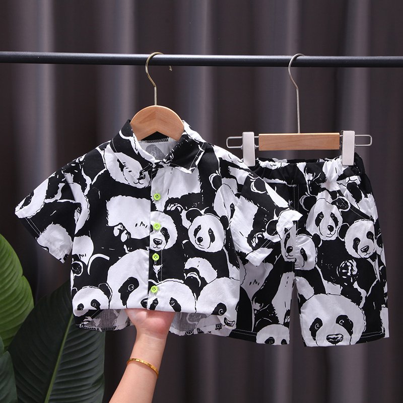 Boys Fashion Panda Pattern Shirt And Shorts