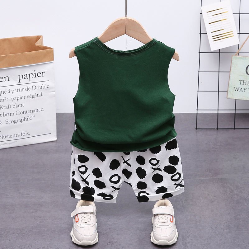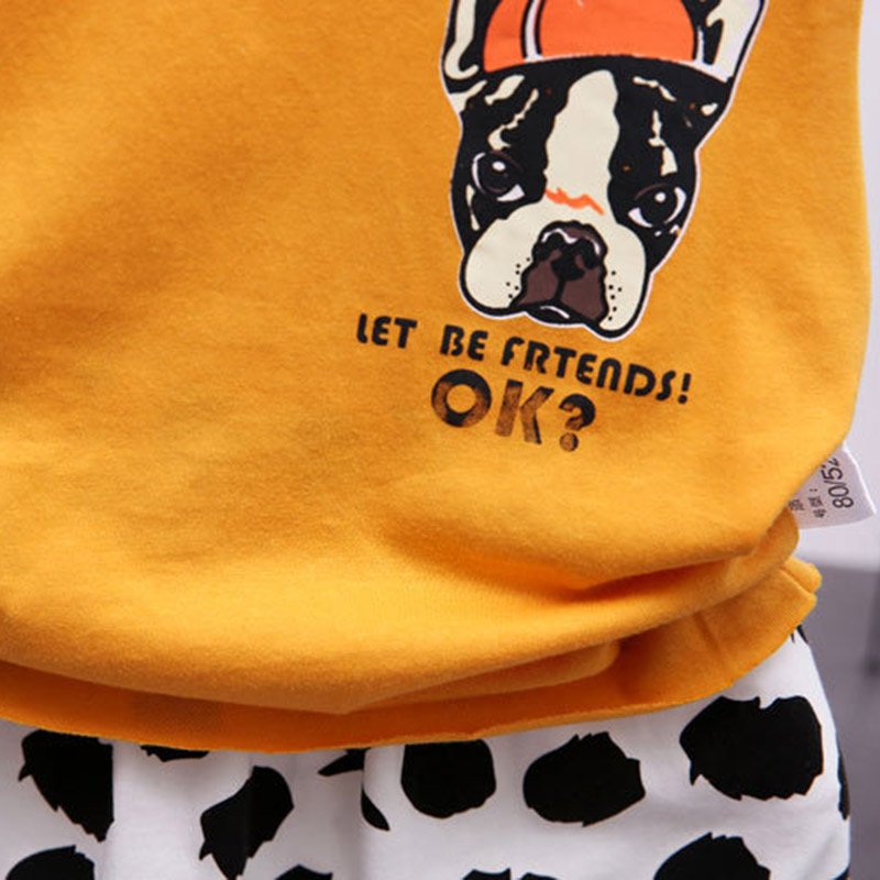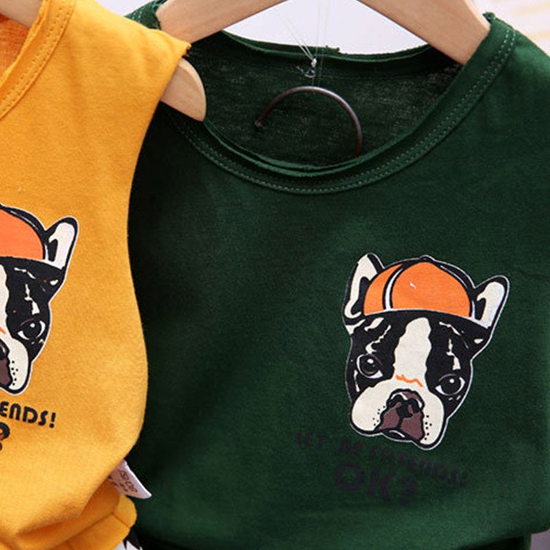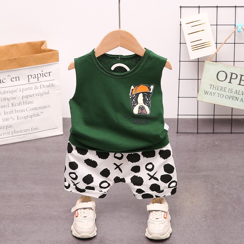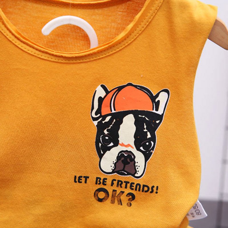 Boys Fashion Puppy Pattern Vest And Casual Shorts Set