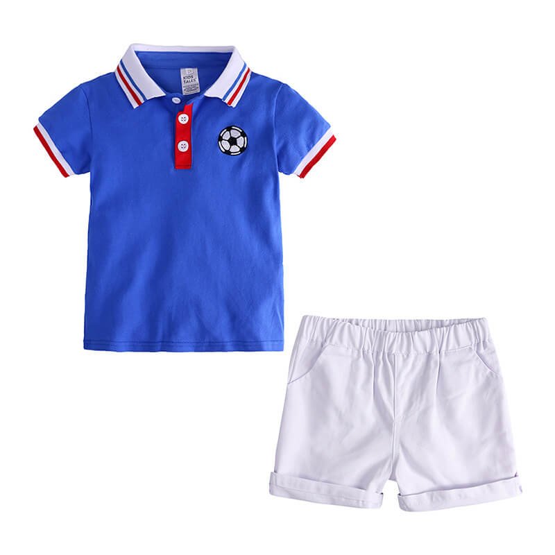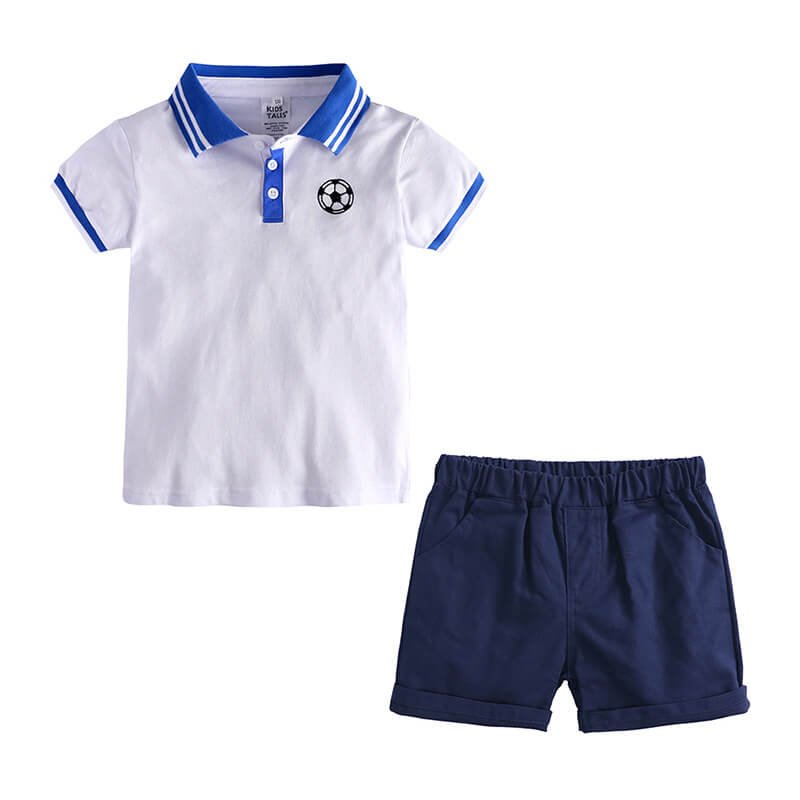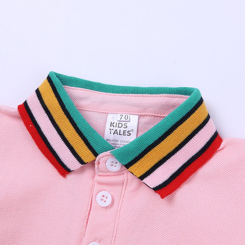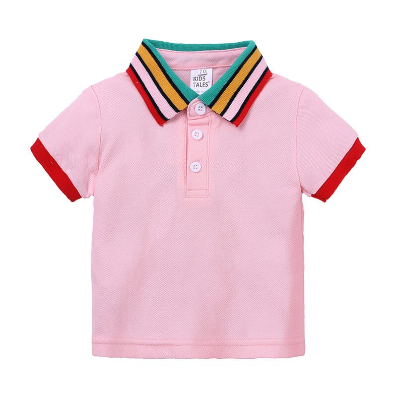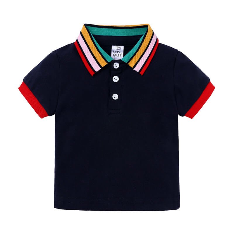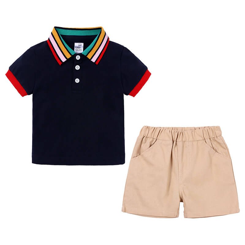 Boys Fashion Rainbow Collar Polo Shirt And Solid Color Shorts Set