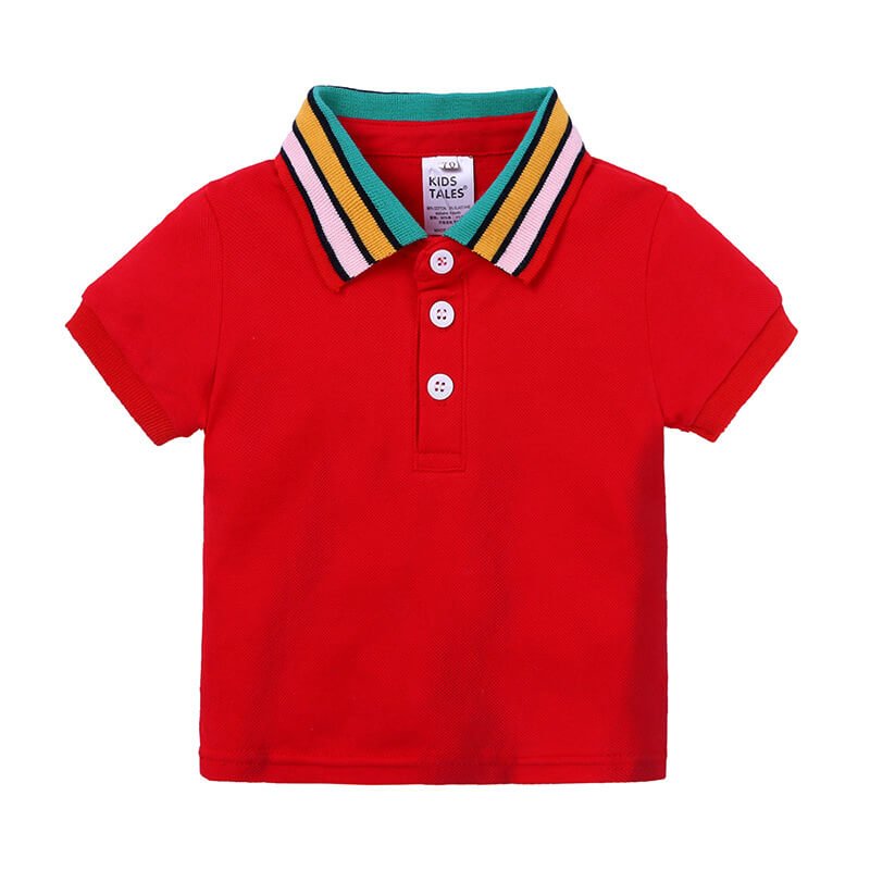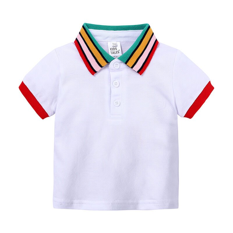 Boys Fashion Rainbow Collar Polo Shirt And Solid Color Shorts Set