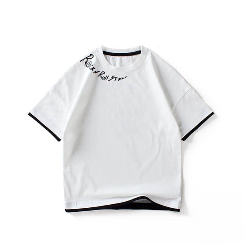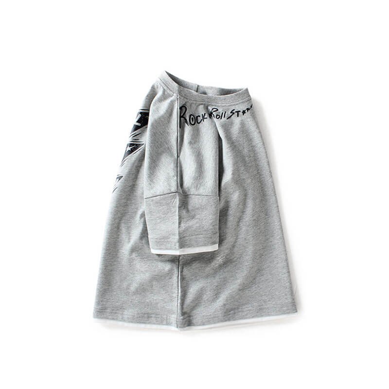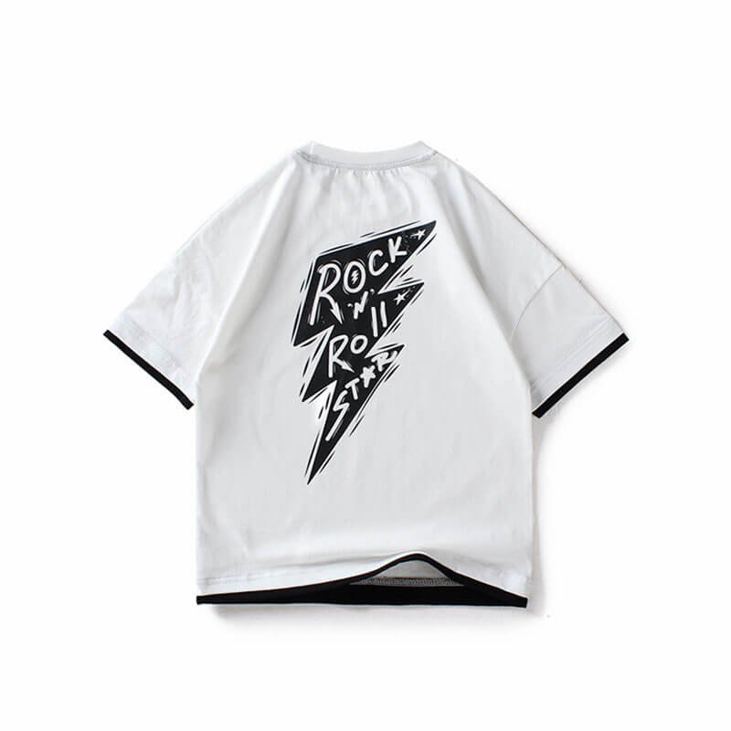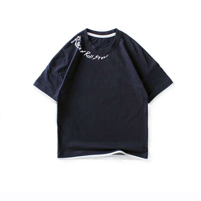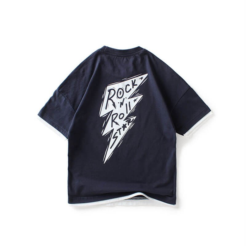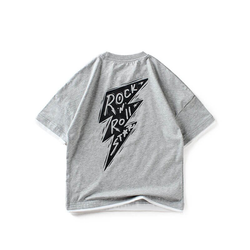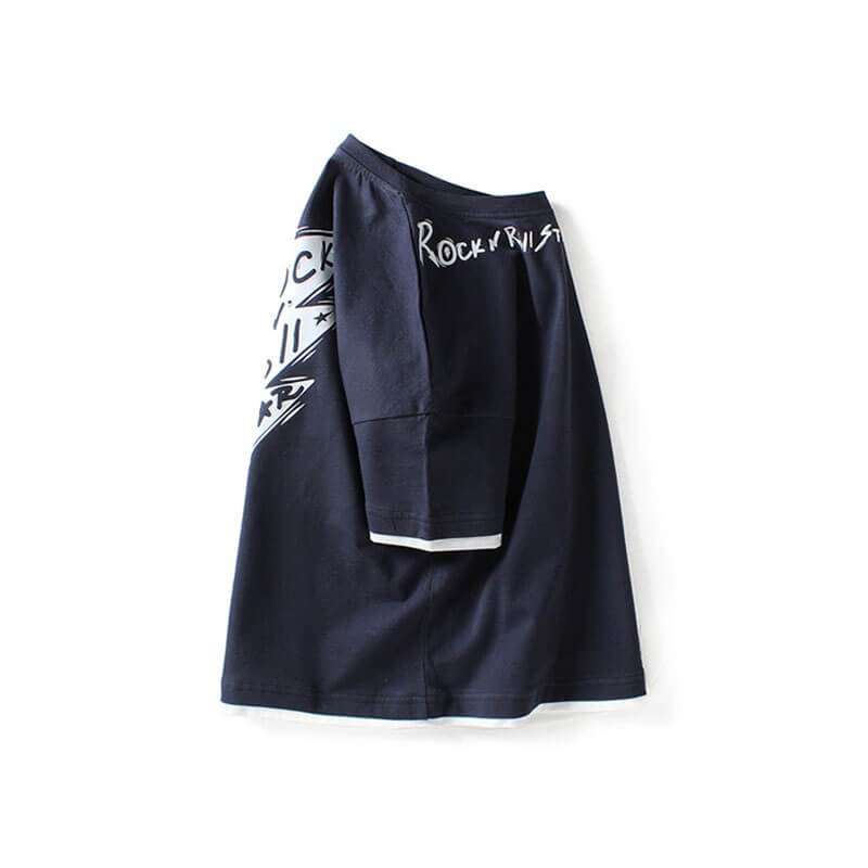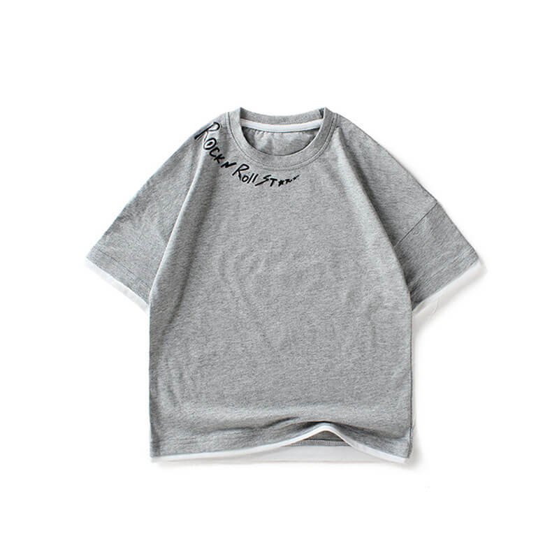Boys Fashion Short-sleeves Letter Printed Fake Two Pieces T-Shirt
